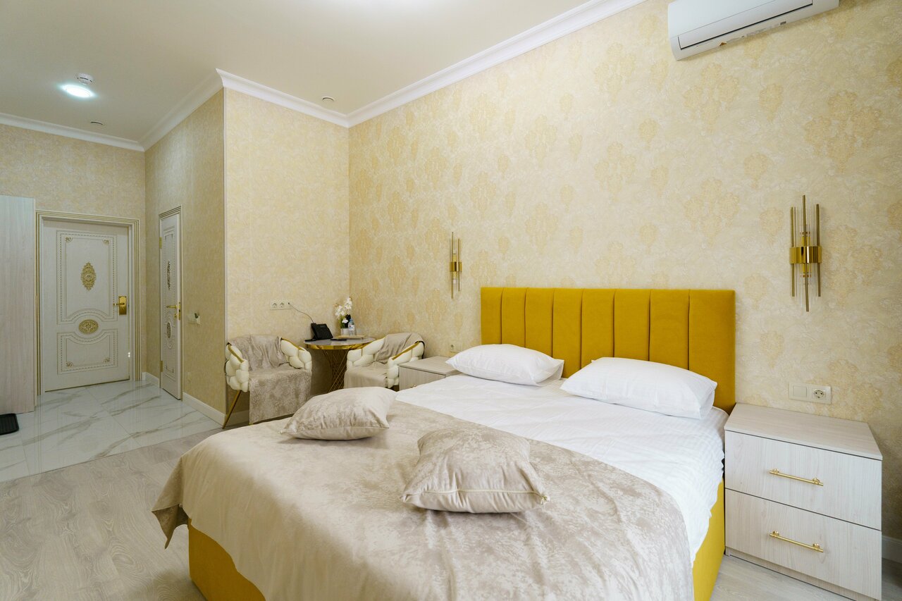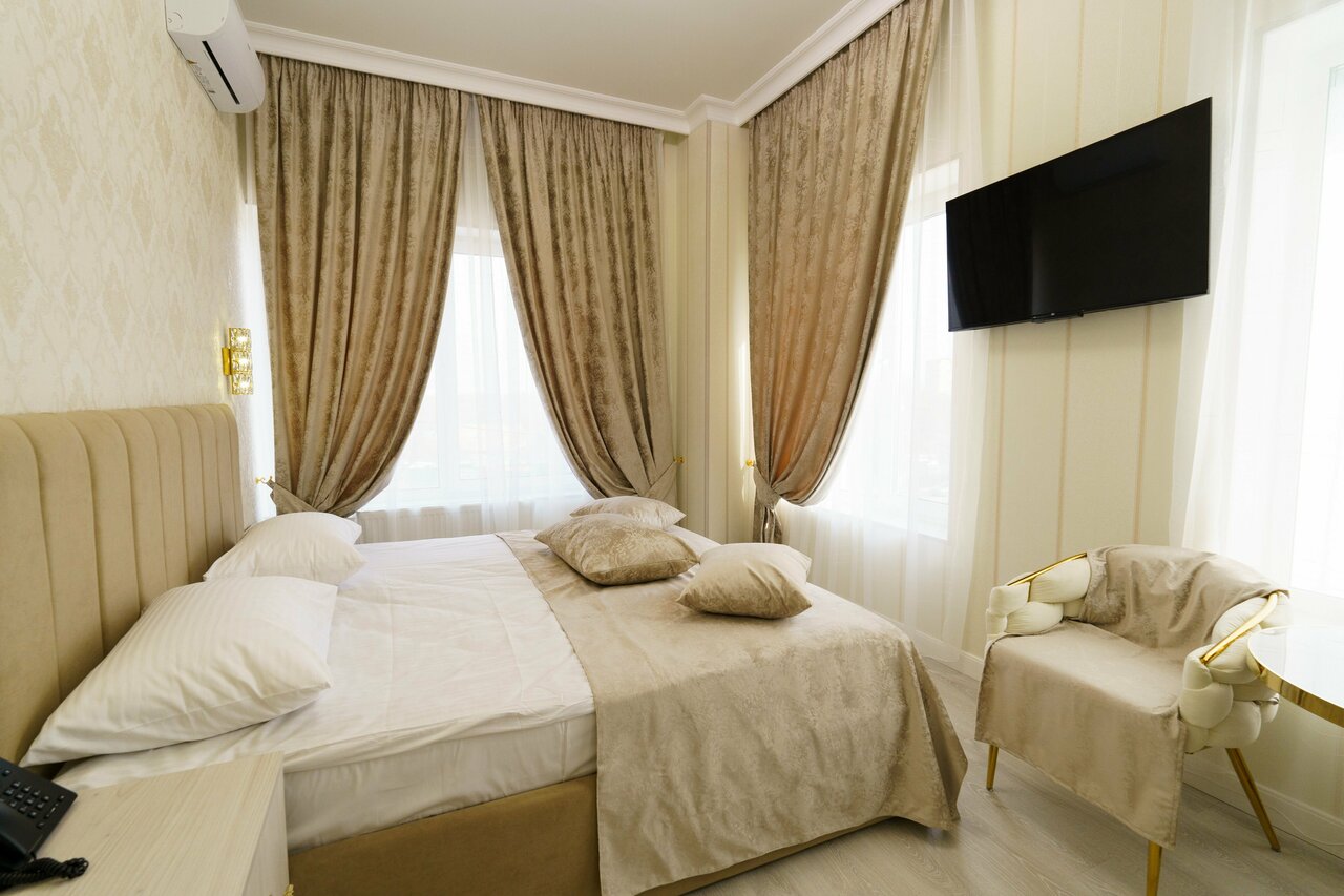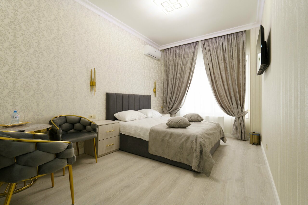 Наш номер люкс – это идеальное сочетание комфорта, стиля и функциональности. Просторный и уютный, он создан для тех, кто ценит высокий уровень обслуживания и хочет насладиться отдыхом в приятной атмосфере. Номер включае