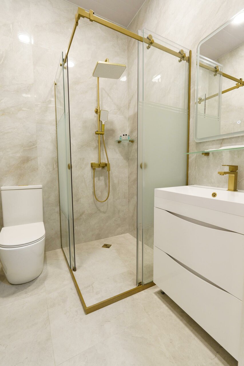 Останавливались на одну ночь — очень довольны отелем и условиями размещения. Красивый и современный отель, номера чистые и со свежим ремонтом. Брали номер standard — был просторный номер с двухспальной кроватью (единый большой матрас). В номере есть холодильник, чайник, большой телевизор. Красивая ванная, порадовало наличие халатов, тапочек и одноразовых гигиенических наборов. Мы жили на 2 этаже с видом на город, шума не слышали даже когда открывали окна. Соседей тоже не слышали — шумоизоляция хорошая) На этаже рядом был кулер. На ужин заказывали доставку еды. Персонал очень доброжелательный, Нам все очень понравилось, я искренне рекомендую данный отель