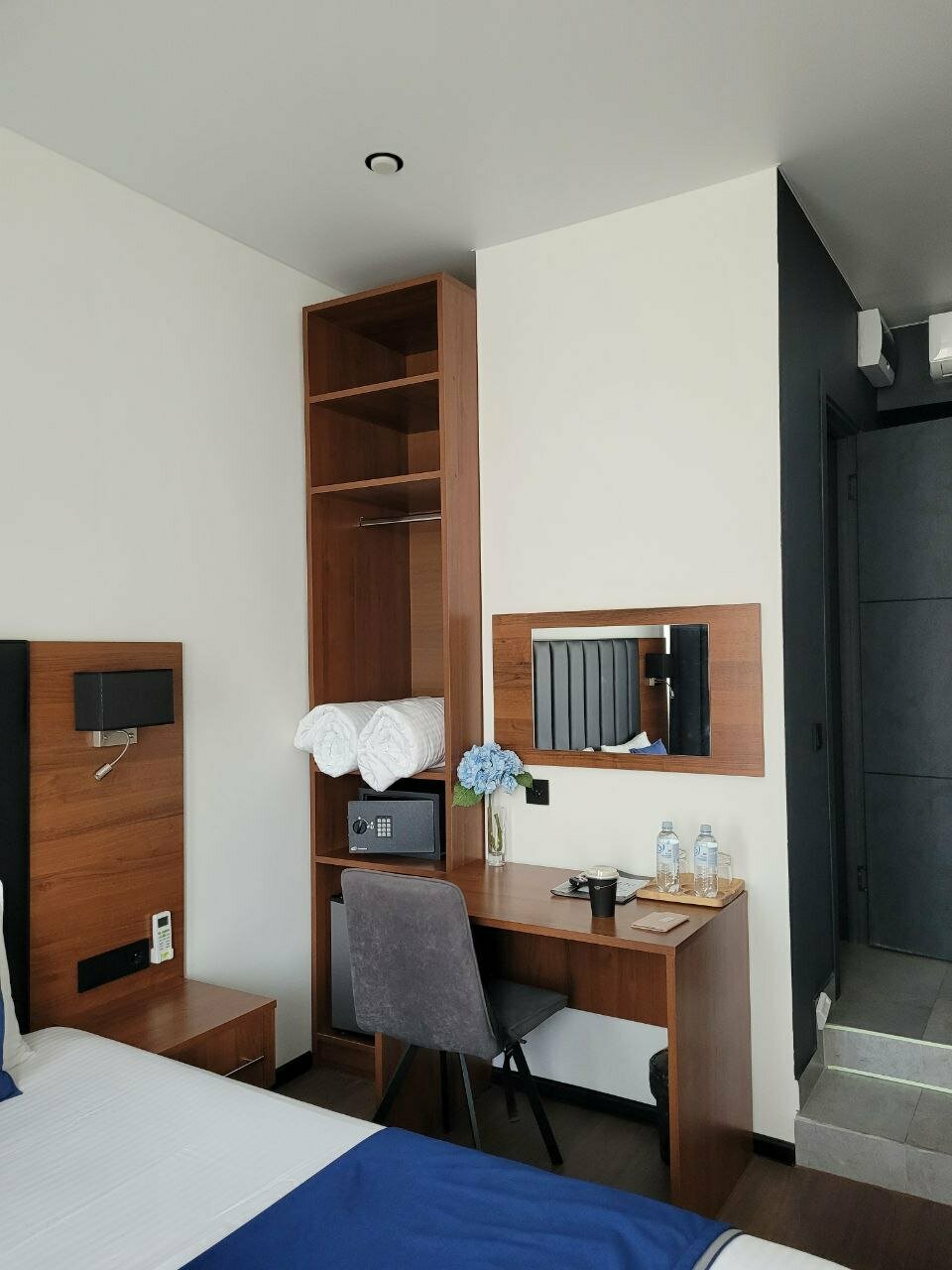 Плюсы: Новая мебель и сантехника, есть кондиционер. Минус, завтрак только с 9ч, можно договориться на 8.30ч. В номере нет окна.