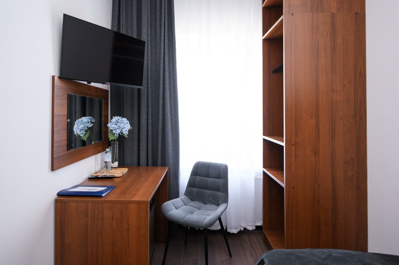 Отличное расположение: ж/д и автовокзал в 10 минутах, что было очень важно для нас, рядом есть продуктовые магазины/кафе/бары. Находится в центре города. Номера свежие, ремонт хороший, на просьбы персонал реагировал быстро, все понравилось.
