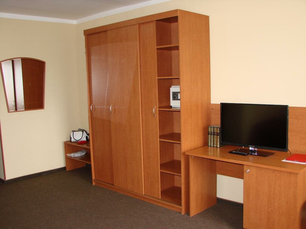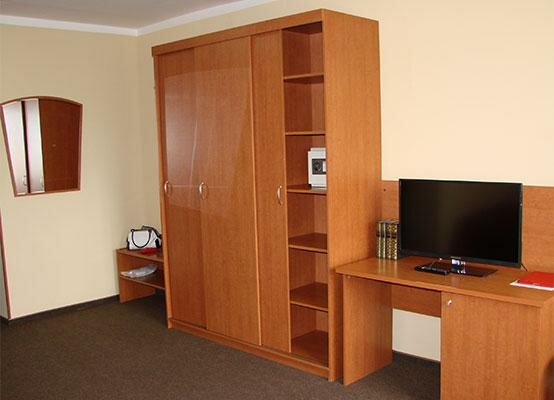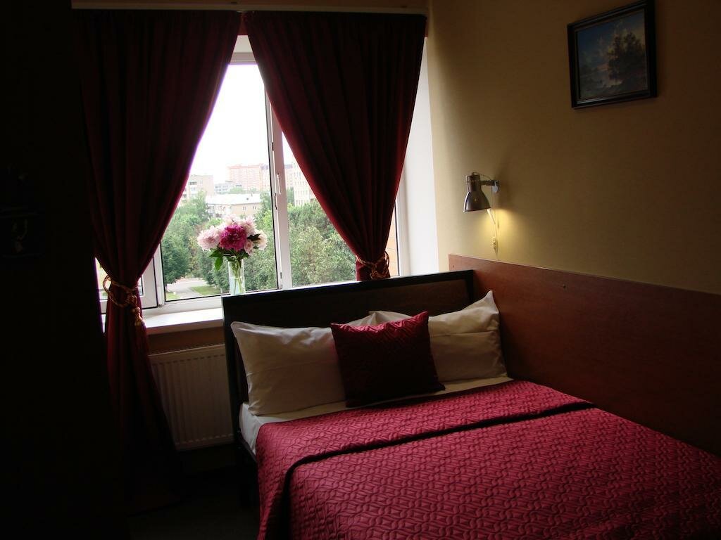 Неплохая гостиница. Номера различные. Я жил в двухместном номере с с усилинными кроватями. Душ, туалет, телевизор, небольшой холодильнн. В номере проблемы с розетками. Телефон можно зарядить от розетки от телевизора или выключить холодильник, и туда подключить зарядное устройство. Есть ресторан, предлагают ужины по 500 руб. Обеды по 550 рублей. Ходил на ужин, не понравилось. Короче — жить можно неплохо.