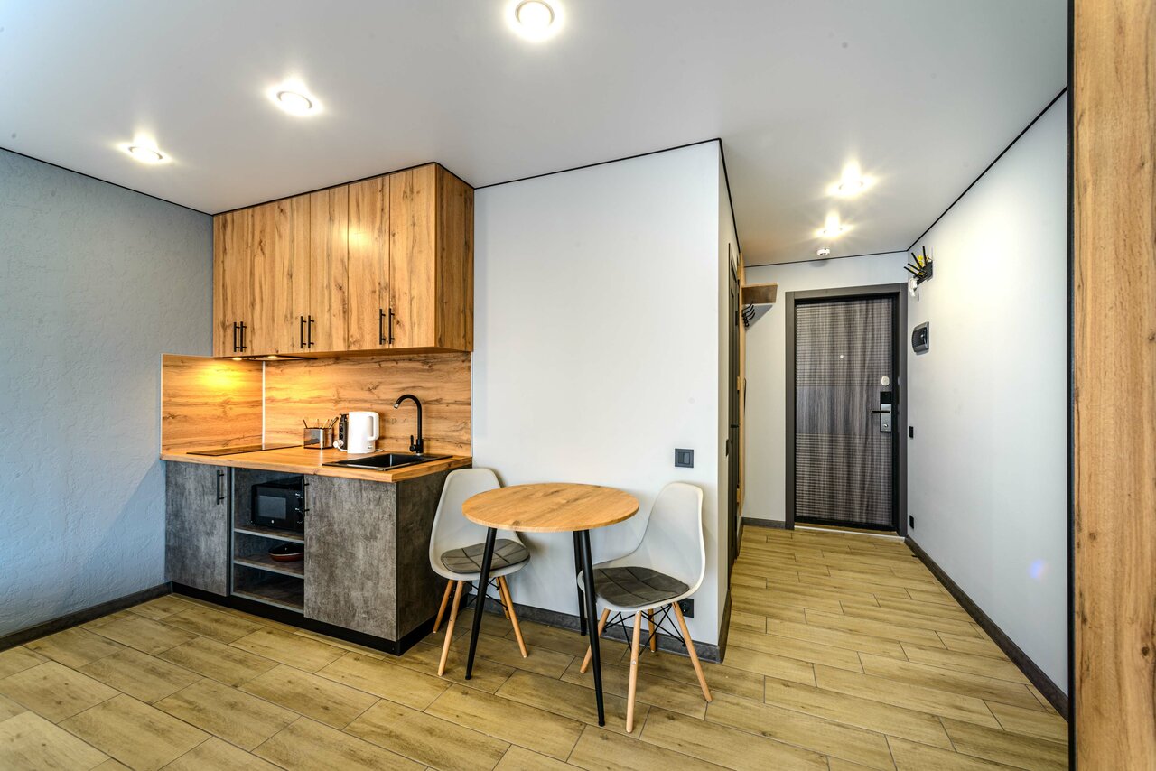 Очень хорошее место, все чисто, стильно, современно. В номере есть кухня, что немаловажно, уютно, тепло. Очень довольны!