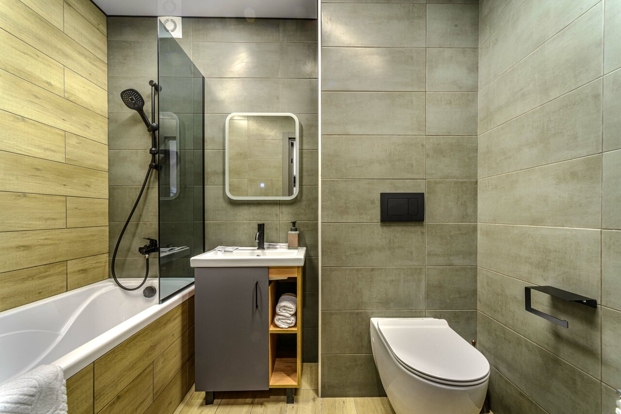 Очень понравились апартаменты. Заселились быстро, хоть было уже поздно. В апартаментах чисто, много места, всё необходимое есть. В ванной гель для душа, шампунь, зубная щетка и паста, мыло, полотенце, фен. На кухне чайник, необходимый минимум посуды, чай, кофе, сахар. Всё очень понравилось.