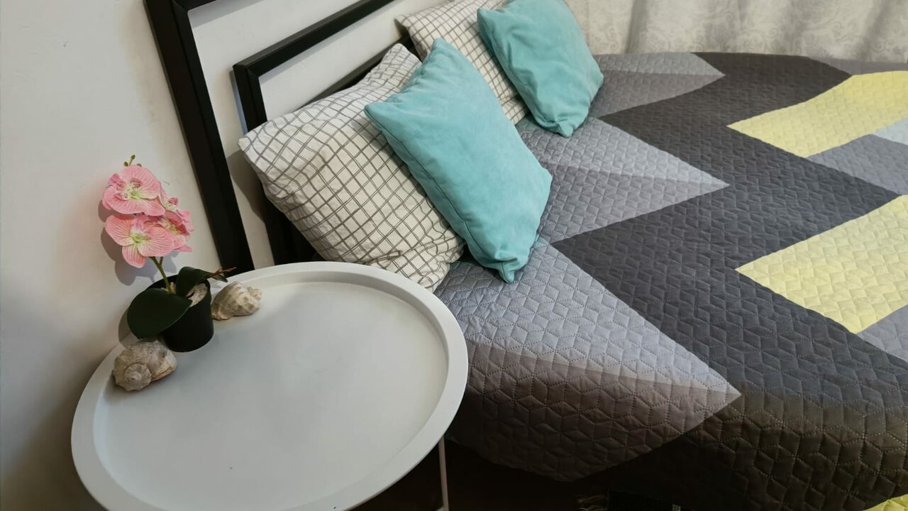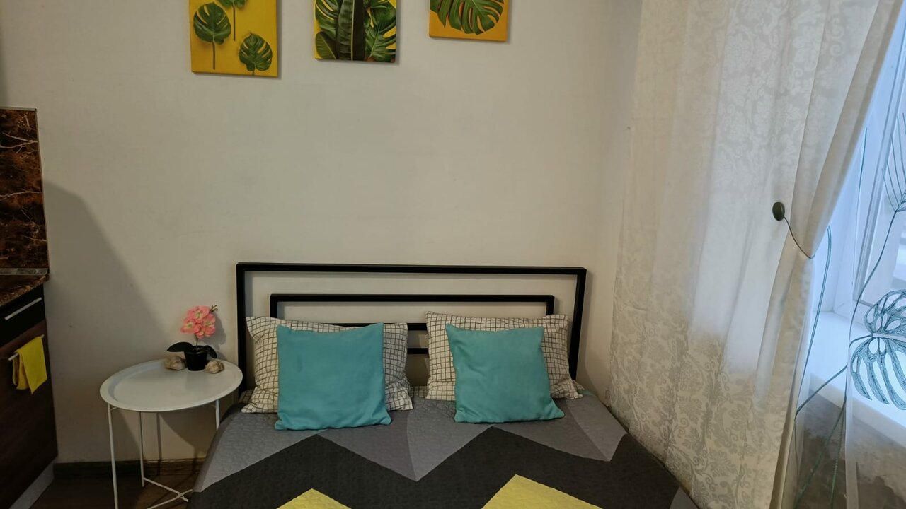 Уютная студия со всем необходимым. К услугам гостей- двуспальная кровать, проплаченные подписки на он-лайн кинотеатр, кухня с посудой, средства для душа, белье , полотенца и все необходимое для краткосрочного проживания.