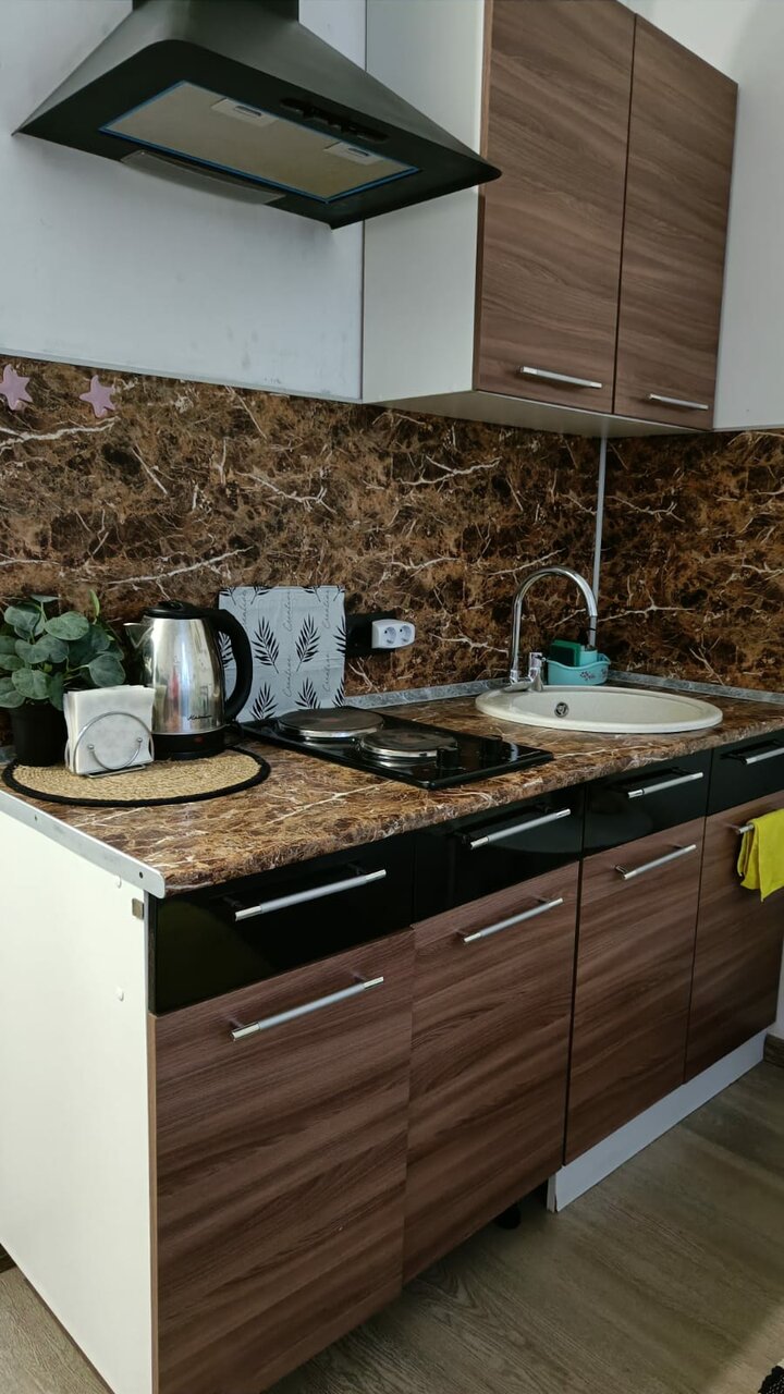 Рекомендую,удобная инфракстура,рядом магазины,станция.сама студия уютная,всё необходимое есть,вплоть до моющих,вся бытовая техника в исправности