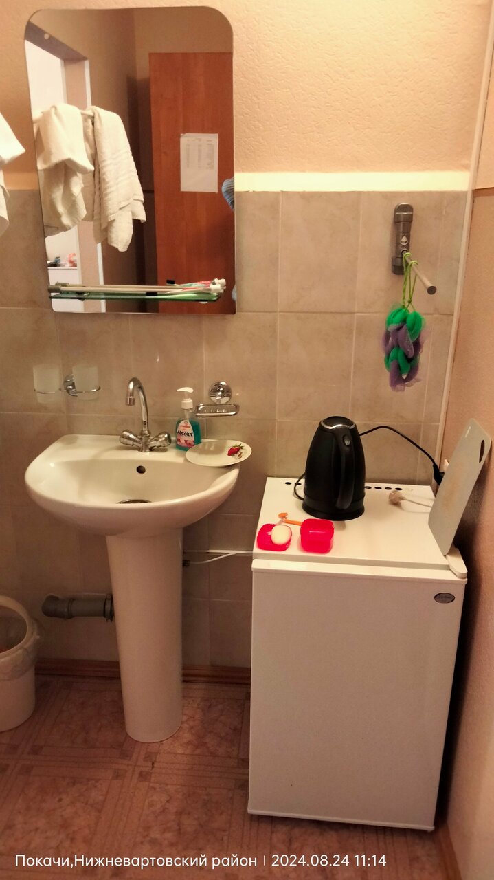 Уютно. Тепло. Чисто. Чайник,холодильник в номере есть. Кулер в коридоре. До продуктовых магазинов, не более 100 м.
