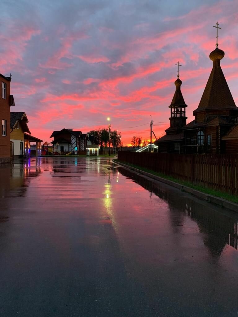 Место тихое. Народу не было совсем видно, хотя в частных домах (они располагаются на территории посёлка) вечерами горел свет и играла музыка. Рядом шикарный лес, он не для прогулок, это лес! для грибников. На краю посёлка небольшой загон с пони и козами (можно кормить), по центру — церквушка (при нас не была открыта ни разу), пруд с беседками и пару дорожек вокруг. Всё. Сложилось такое ощущение, что в столовой (два зала по 6 столов) готовили только для нас и рабочих посёлка. Еда домашняя, вкусная. За территорией у ворот приютился небольшой магазинчик со всем необходимым для шашлыка и чаепития. Не хватило света вечером, фонари есть, но работают через 2, на 4ый) Домик просторный: 2 этажа, 2 ванны/туалеты, 3 небольшие спальни, кухня, гостиная. На кухне: чайник, плита, холодильник, посуда, микроволновка, в общем можно готовить самостоятельно. Как то так)