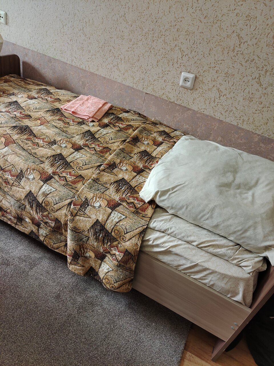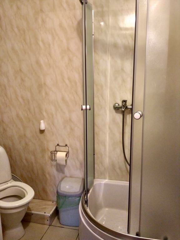 Честно говоря, двоякие чувства вызвала’гостиница’. Были с дороги, решили всё-таки переночуем. Выбрали, что ближе к трассе. По фото и отзывам было понятно, что на лакшери можно не рассчитывать, на ночь с дороги должно подойти. Гостиница расположена в жилом доме на втором этаже.Коридор в ужасном состоянии, как-будто в нем не было ремонта со времён постройки дома. При заселении девушка дала нам ключ и показала где номер. На этом все. Где расположены туалет с душем не сказала. Искали интуитивно, туалет оказался за дверью с надписью ‘не курить’. Душ мы так и не нашли. Кран в туалете не работал. На полу разбитая плитка… Кровати очень скрипучие, на полу ковролин. На утро уточнили где что и как. Умылись уехали. Звёзды за: то, что разместили в 12 ночи, разрешили с собаками, чистое белье и конечно цена. Владелецу советую разместить таблички с обозначением что где. И сделать хоть маломальскую косметику. Ну а для ‘вахтовиков’ или ‘командировочных’ и так пойдет…
