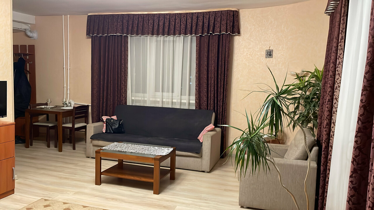Жили в отеле с 3 по 5 января. Номер-полулюкс. В номер чисто. Удобства в номере. Больше ,кроме кроватей,стола и крошечного телевизора,ничего нет. В полулюксе нет ни холодильника,ни чайника. Рядом с номером — общественный туалет. Всю ночь двери хлопали так,что спать было невозможно. Самое неприятное — в наше отсутсвие из сумки вытащили все деньги. Около 50 000 рублей. Выгребли даже всю мелочь. К сожалению,обнаружилось это уже,когда вернулись домой.