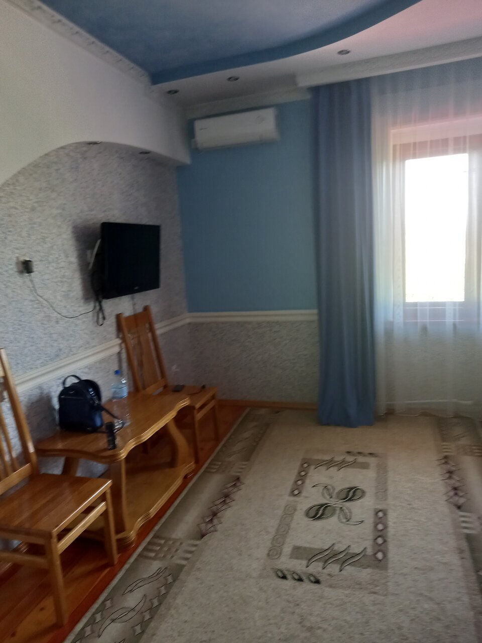 Хорошая гостиница. 2 местный номер, при желании можно разместится 4 (кровати широкие) Чисто везде ковры, ноги не мёрзнут. В номере телевизор кондиционер чайник. В кафе поздно вечером все есть. Мясо готовят очень хорошо. На ноябрь 24года 2.5₽