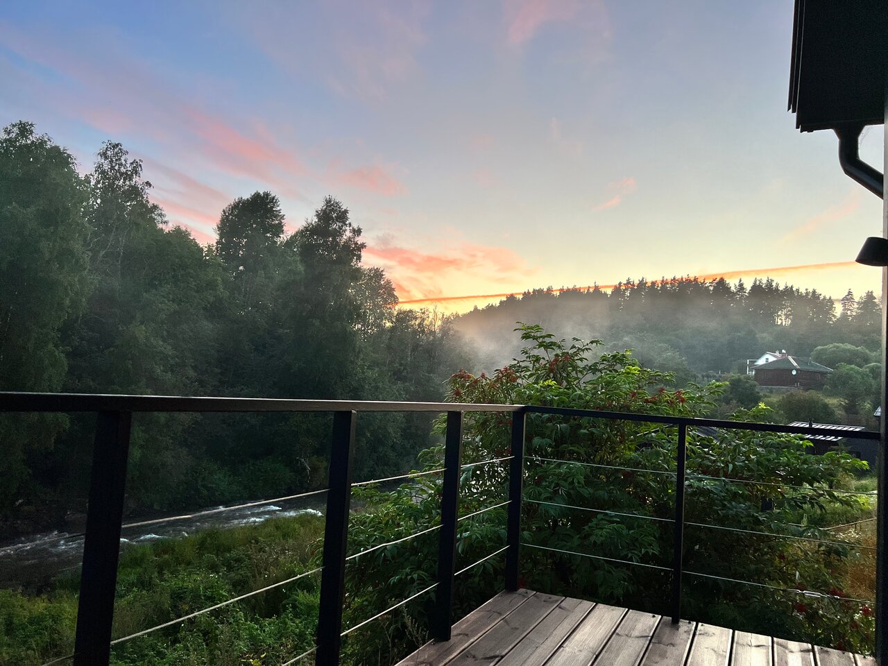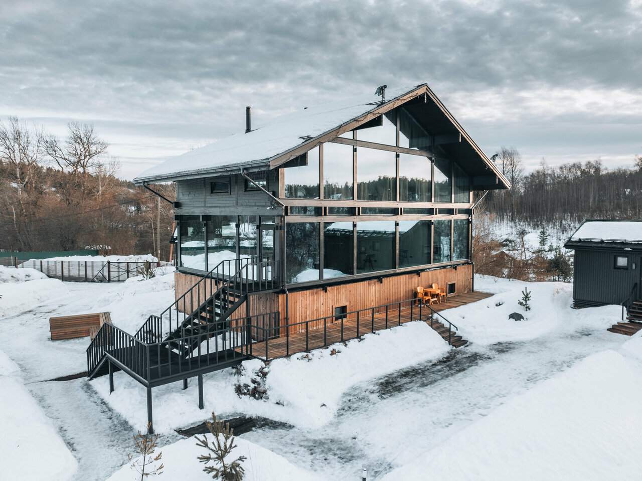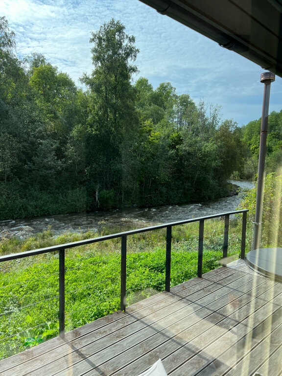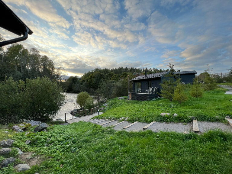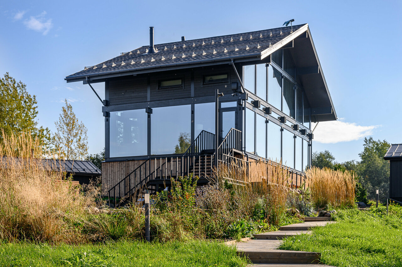 - Дома с панорамными окнами и видом на реку.