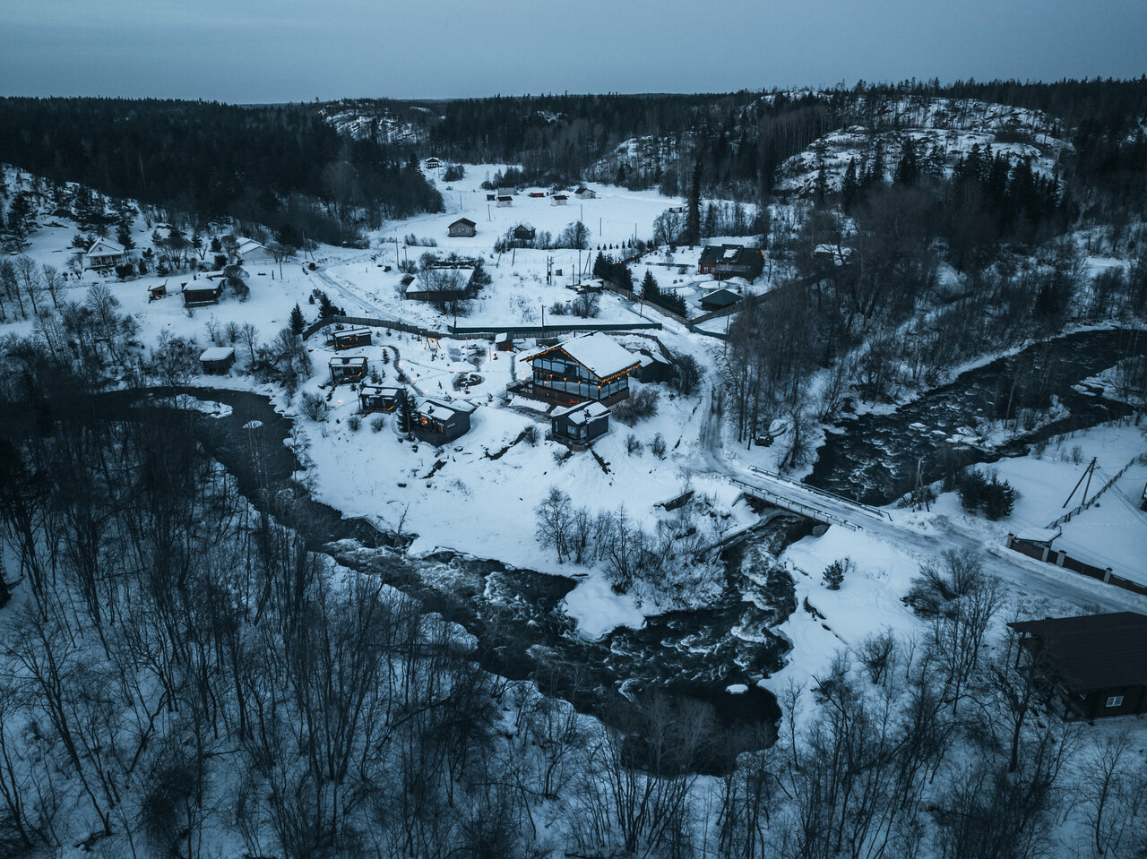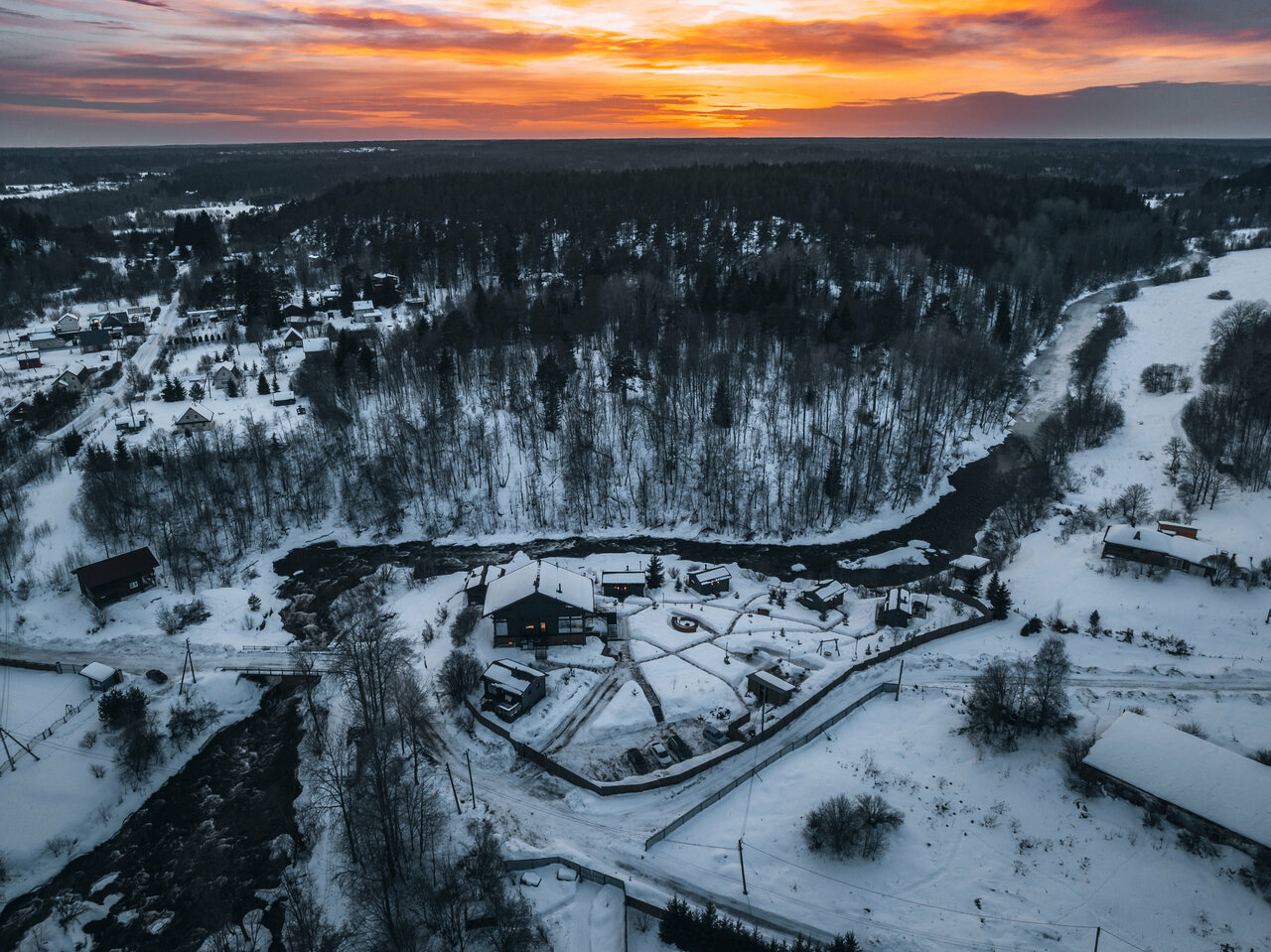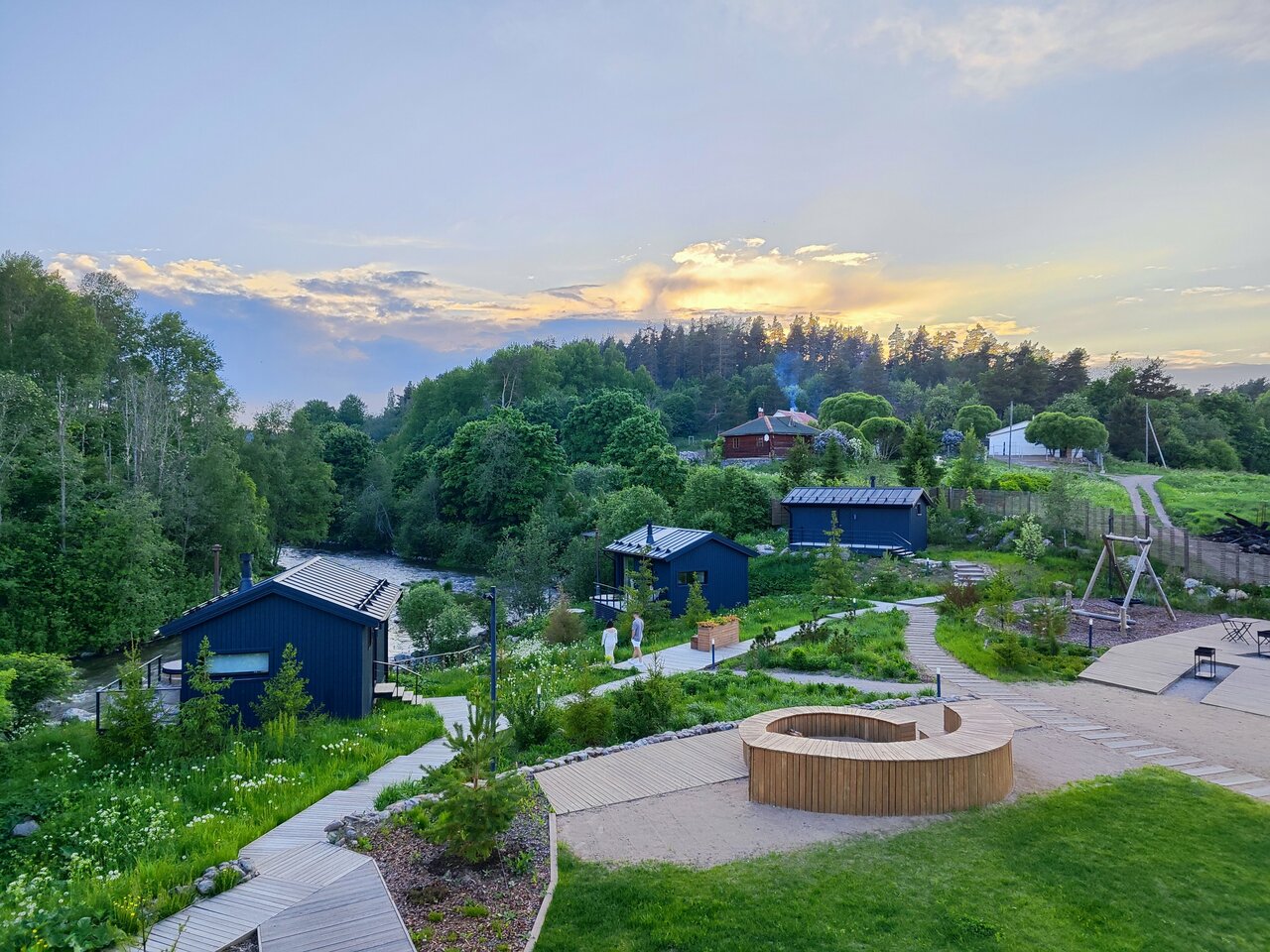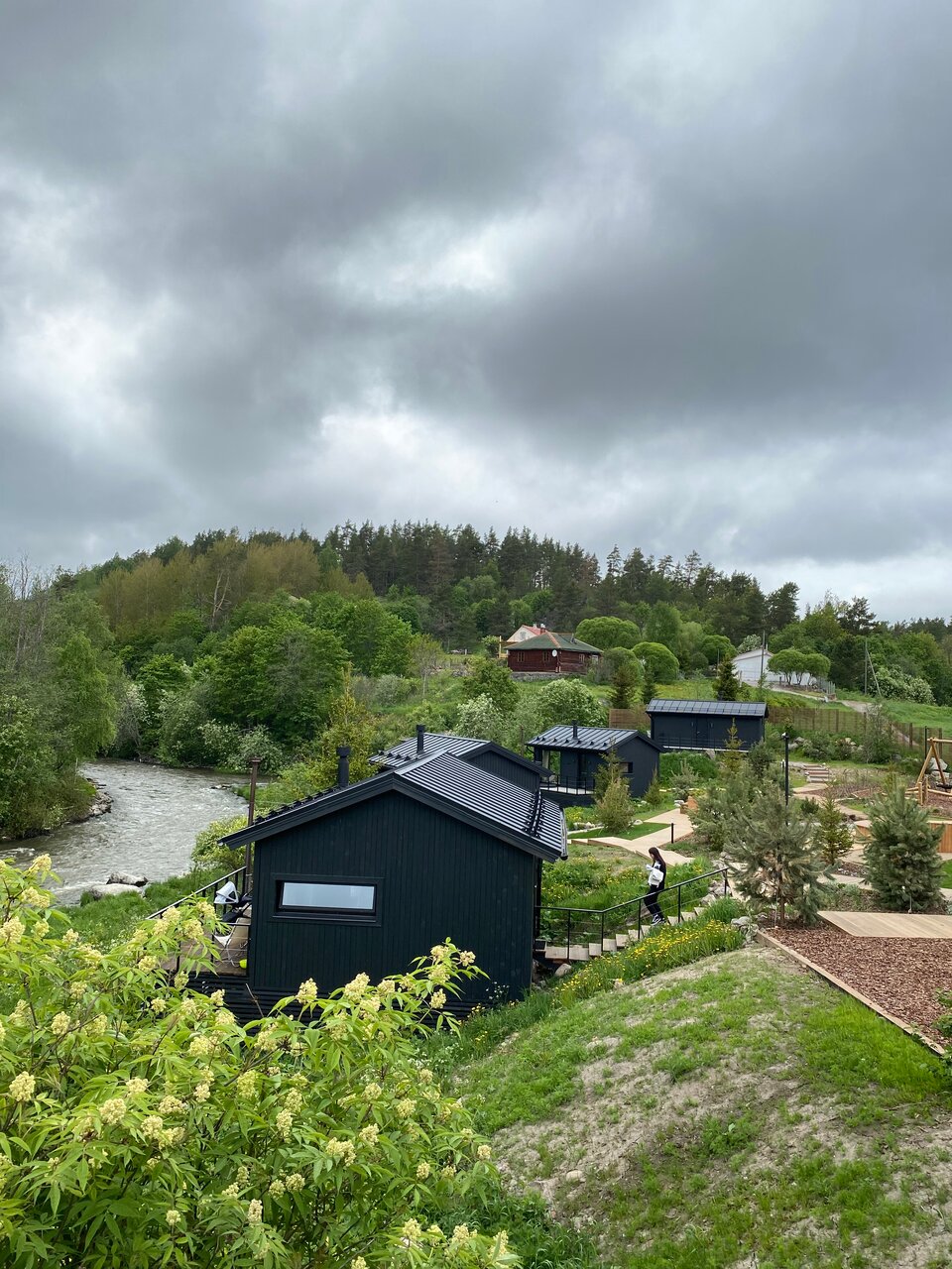 - Дома с панорамными окнами и видом на реку.