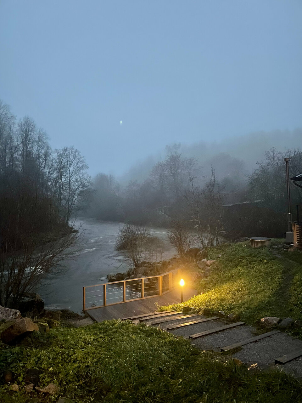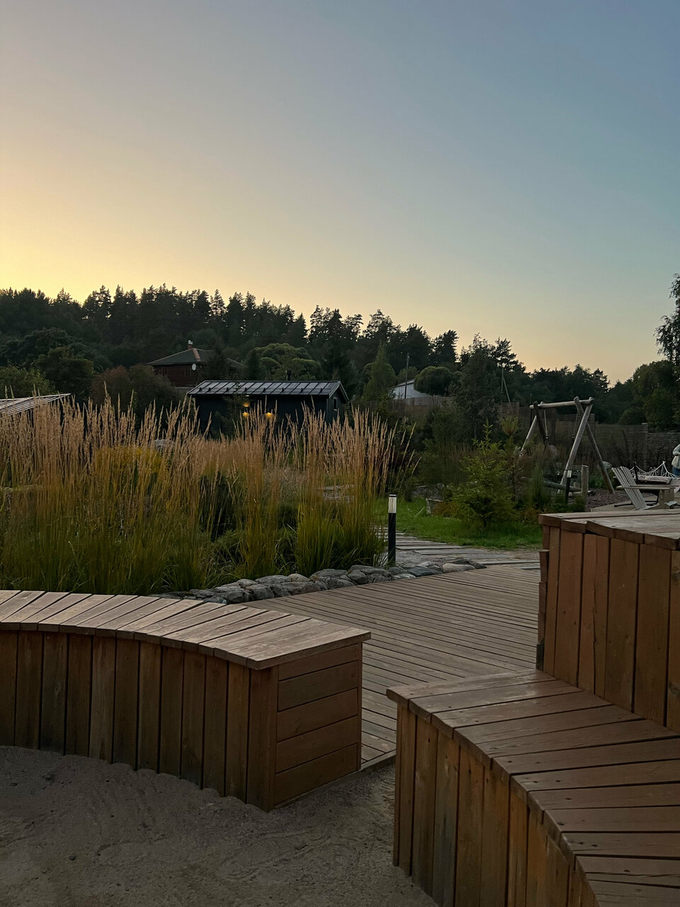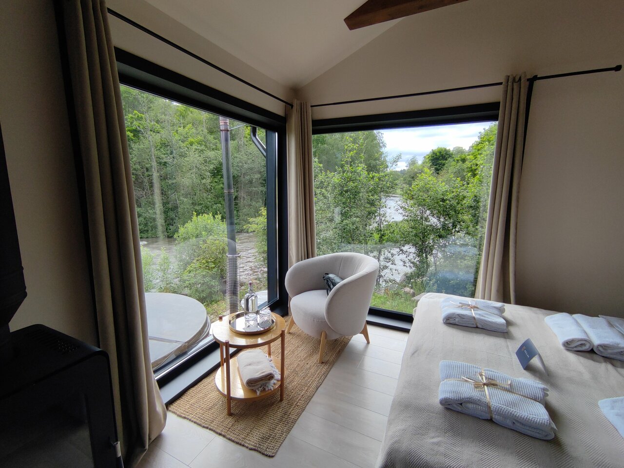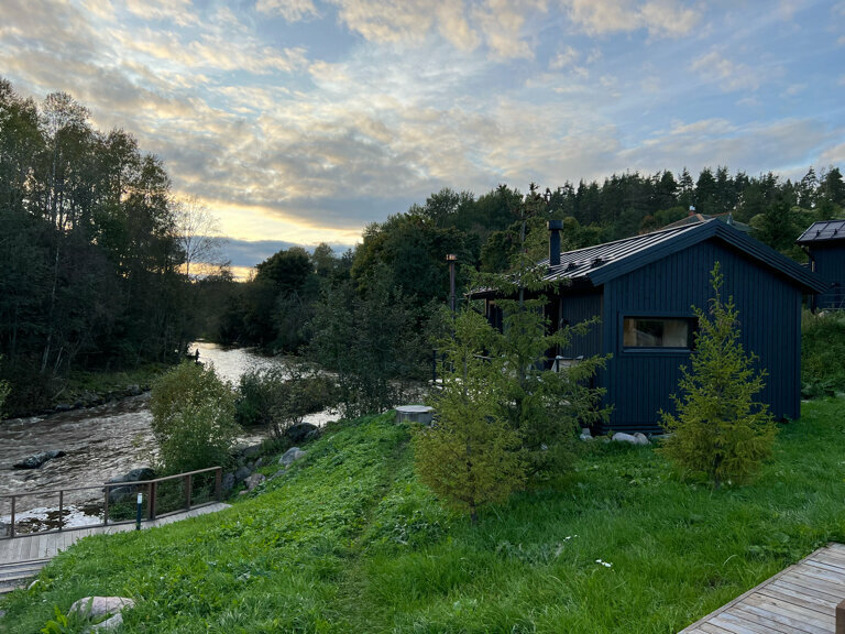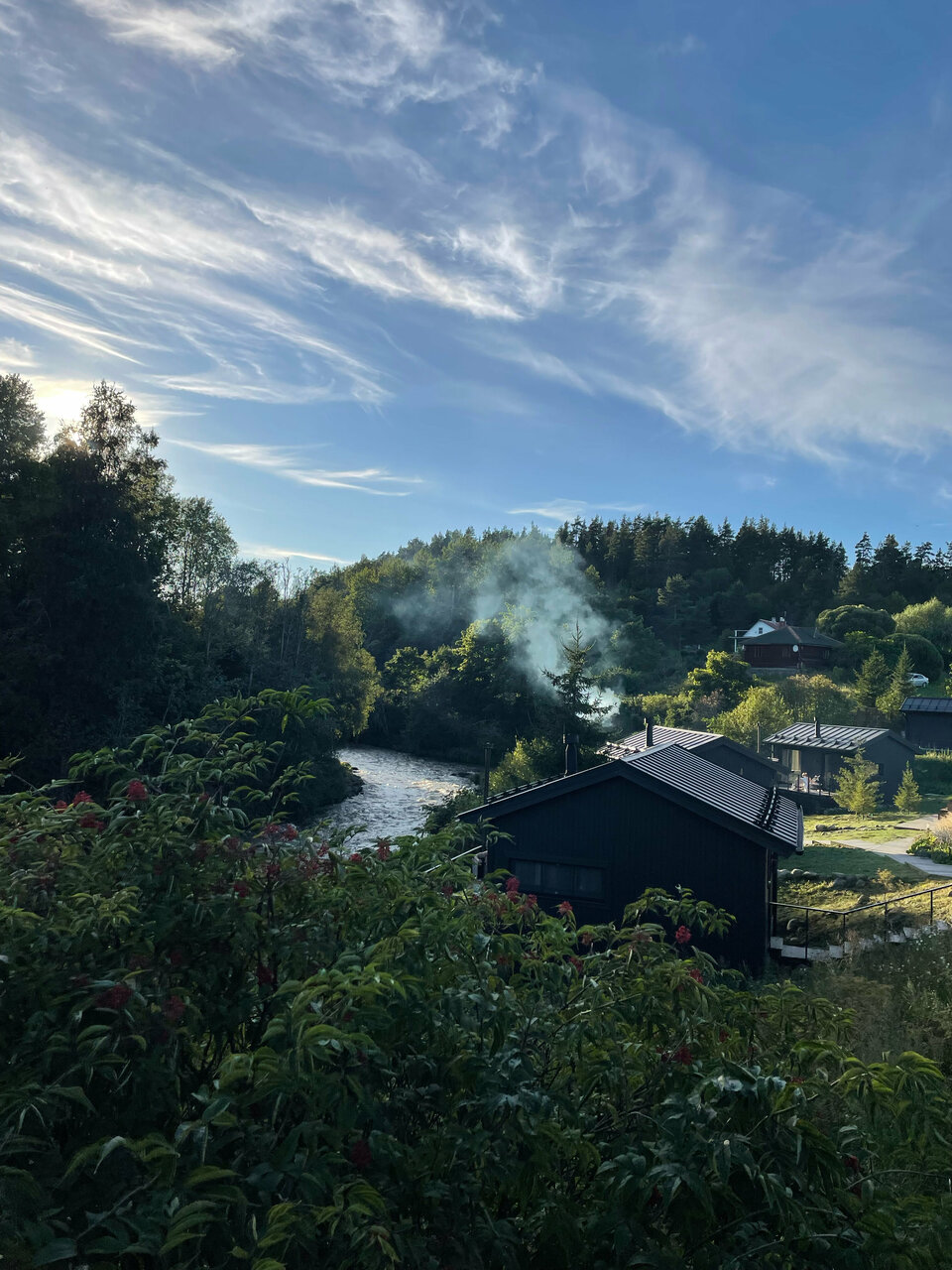 - Дома с панорамными окнами и видом на реку.
