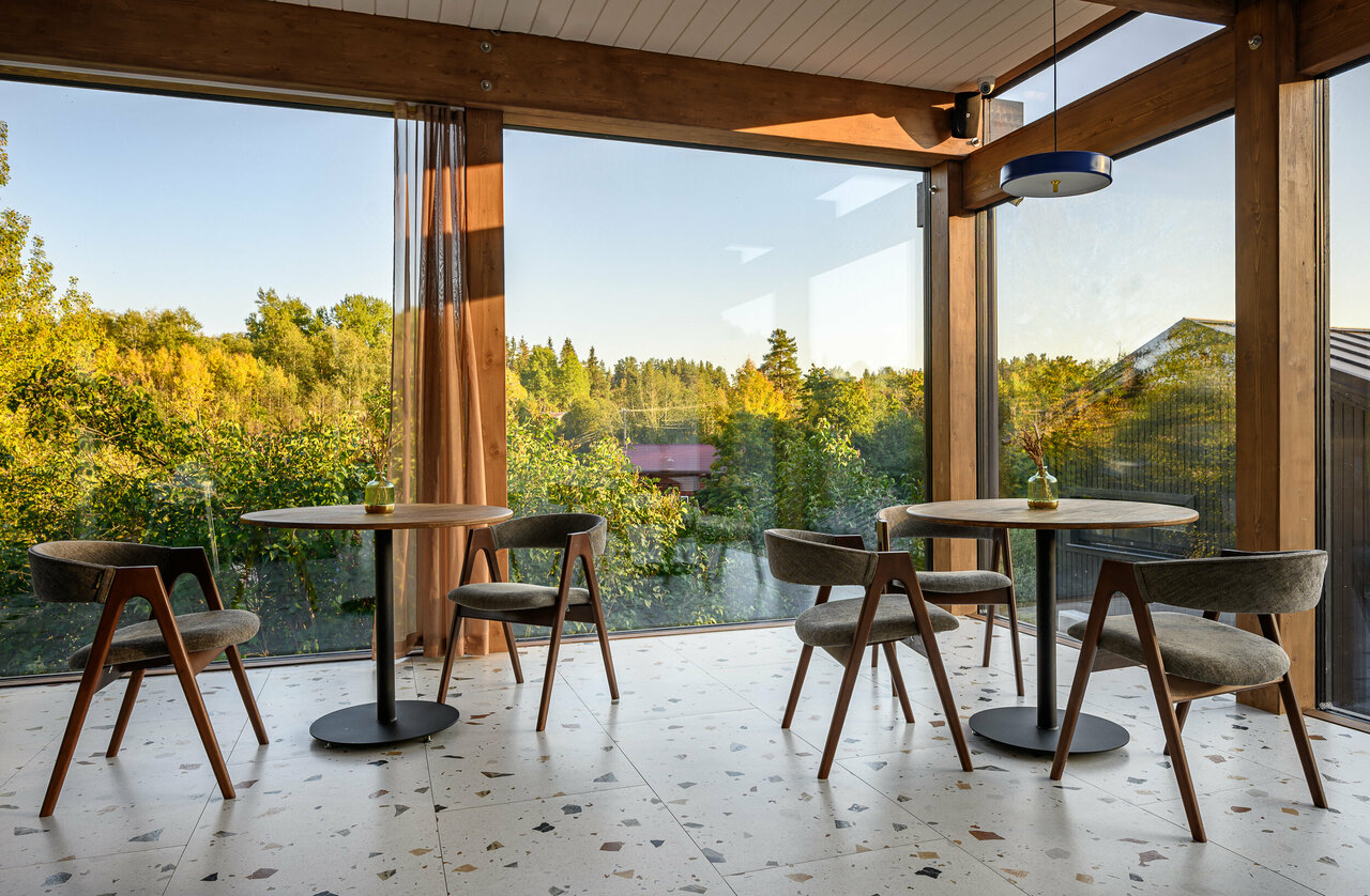 Для гостей: — Питание: английские завтраки, ресторан, кафе, бар. — Досуг: баня, сауна, купальня, прокат велосипедов и лодок, детская площадка, зоны для пикника. — Удобства: бесплатные Wi-Fi и парковка, проживание с животными (платно), уборка, лобби-зона.
