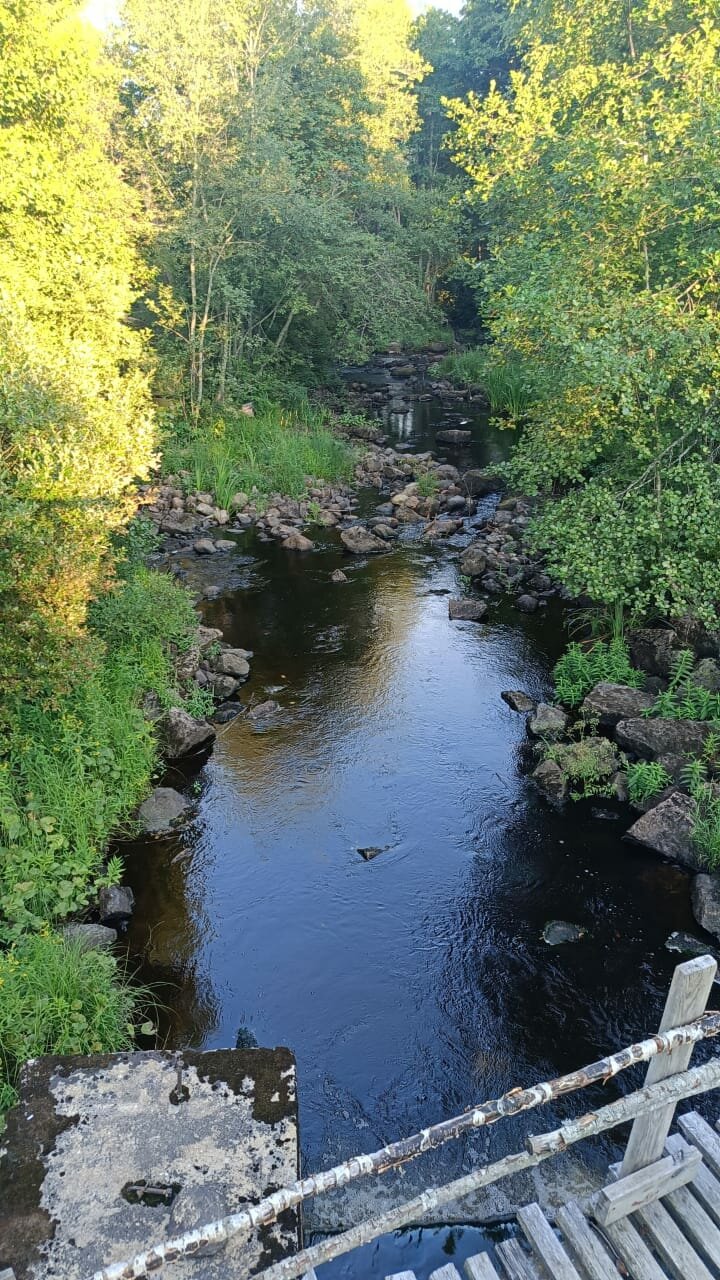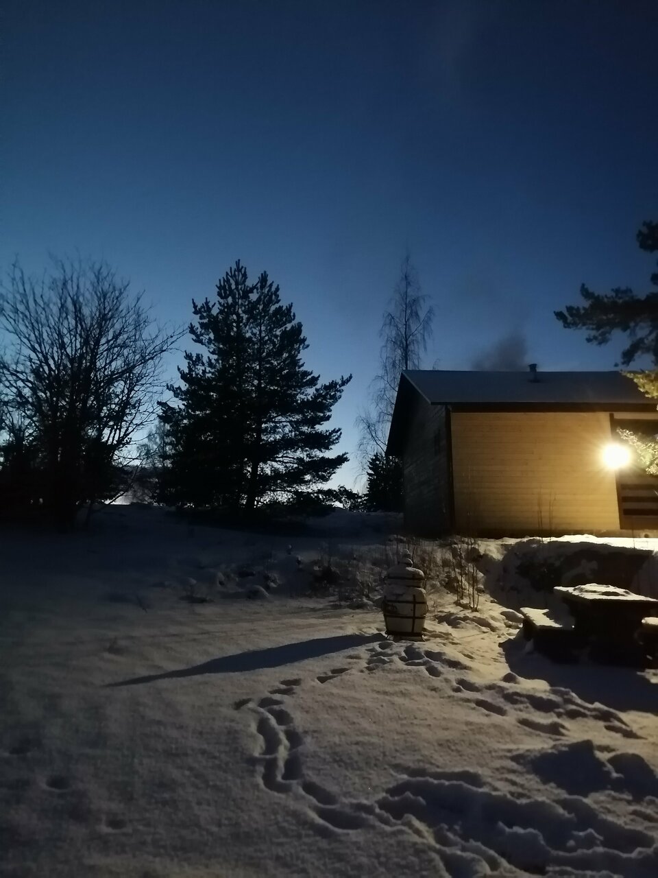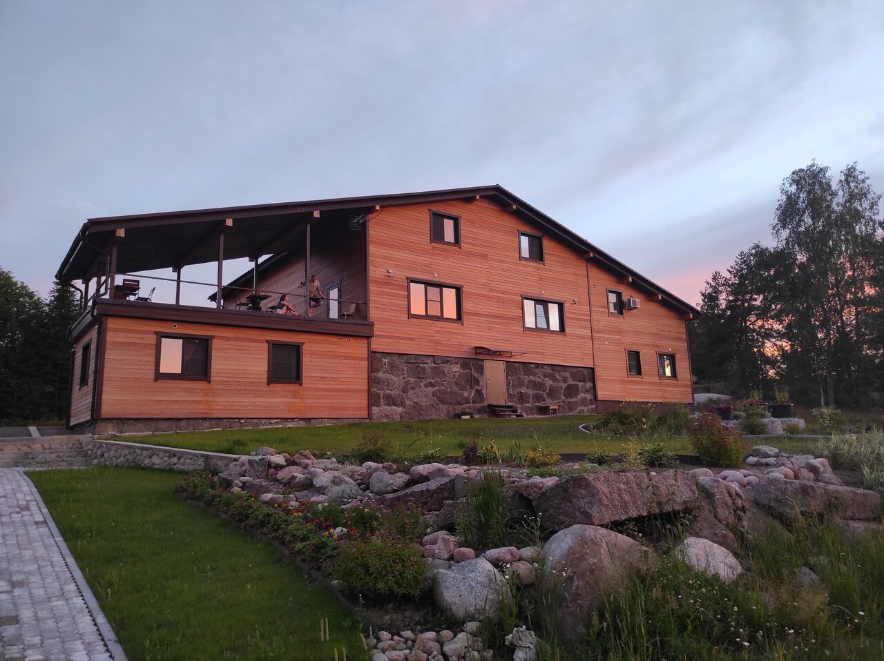От границе очень рядом. Приехали в 6- ом часу утра и нас ждали. Я приняла горячий душ и отметила, что санузел чистый и исправный. Есть средства для мытья тела и головы.Номер просторный. Выспалась . Пошла ознакомиться с отелем. И стало тепло на душе. Меня окружал запах леса, уют деревянного дома: просторного и домашнего с элементами изыска. Очень гармонично.В огромной гостиной-столовой есть камин, комфортная мебель и можно заказать еду. Готовят отлично. Я заказала уху по-фински. Попутчицы каши. Это было вкусно и по-домашнему. Персонал тактичный и вежливый. Ходила везде в носках, тк чистота полов это позволяло.