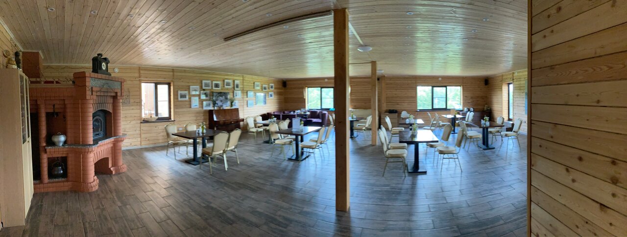 На территории работают кафе, ресторан, баня, купальня, летняя веранда и детская площадка. Дополнительные услуги: прокат велосипедов, лыжного снаряжения, катание на лошадях, рыбалка, настольный теннис.