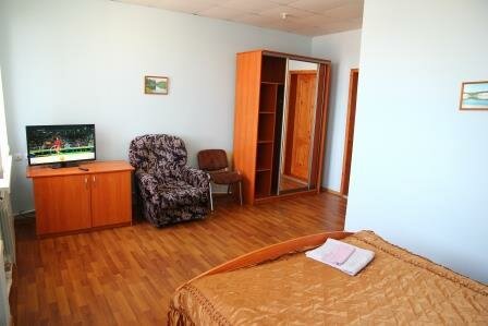 Расположение отеля чуть в стороне от трассы, с красивым видом на реку. Взяли номер люкс. Постельное бельё застиранное, старое Мебель, пол обшарпанные, а цена не маленькая! В завтраке вежливо отказали. Есть посуда на общей кухне, но тоже старая. Осадок от гостиницы не приятный остался.