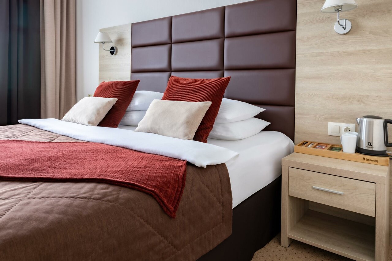 К услугам гостей: — Размещение с животными (платно), заселение с детьми. — Питание: завтрак, полупансион, полный пансион или «всё включено». — Инфраструктура: ресторан, кафе, бар, столовая, летняя веранда, сауна, тренажерный зал, салон красоты, конференц-зал, бильярд, детская площадка. — Удобства: Wi-Fi, кондиционер, холодильник, фен, телевизор, звукоизоляция, бесплатная парковка, велопарковка, трансфер. — Доступность: пандус, автоматическая дверь, лифт.