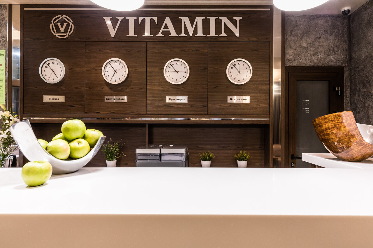 Заезд — с 14:00, выезд — до 12:00. Сайт: https://vitamin-hotel.ru/ Телефоны: +7 (965) 457-40-24, +7 (861) 238-40-00.