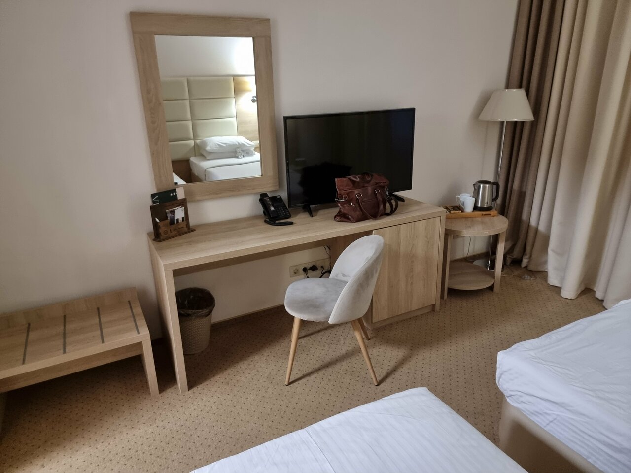 Отель очень, очень красивый ,номера чистые. Ремонт супер.Весь персонал был очень приятным, мы замечательно провели время. Завтрак был включен в стоимость. Он был очень вкусный и полноценный. Муж наелся, а это главное. При хорошей погоде завтрак , обед и ужин можно провести на приятной террасе. В номере есть все необходимое от зубной щетки до фруктовой тарелки и алкоголя. Понравилось, что в этом здании есть и ресторан и спорт зал . Транспортная развязка хорошая. Магазинов много от павильон до крупных сетивиков. Место для машины есть. И лифт с приятной музыкой. Советую
