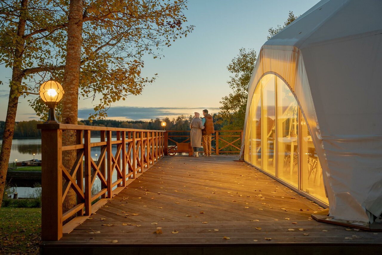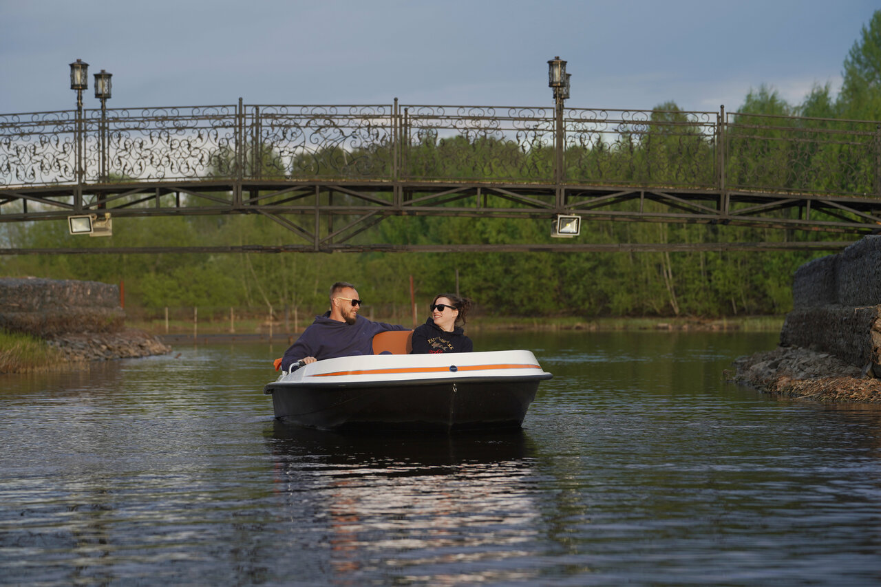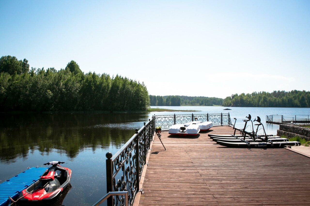 Отдыхали большой семьей с ребенком, в малом доме. В доме есть все необходимые удобства, включая кофемашину, приставку с видеосервисами, Xbox, кондиционеры. На территории действует велосипедный прокат, прокат лодок по озеру, есть подогреваемый бассейн, за отдельную плату можно воспользоваться СПА (сауна, бассейн, джакузи), а также прокатом гидроциклов. Есть детская площадка с большим выбором спортивных снарядов. Чистая уютная территория, также на специальном островке имеется место с костром для уютных вечерних посиделок. Парковка для авто есть. Видно, что территорию планируют расширять, производятся работы (шума не замечали). Завтраки понравились, вкусные.
