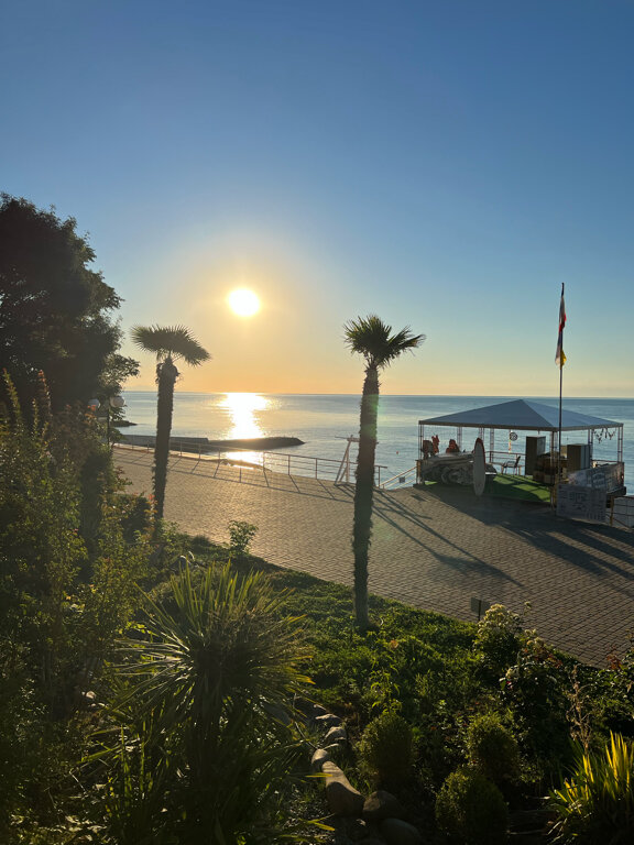Отдыхали с супругой и двумя детьми с 18.08.2020 по 31.08.2020. Замечательный пансионат. Дети были в восторге от занятий в детском клубе, за это отдельное спасибо всем аниматорам — Насте, Насте, Насте, Даше, Любе, Никите. Пока дети в детском клубе, мы с супругой могли спокойно поплавать или прогуляться вечером. В номере убирались каждый день, полотенце и белье меняли своевременно. В столовой еда вкусная, ассортимент разнообразный, есть кофемашина. Персонал очень приветливый. Нашей семье очень понравился отдых в береговой. Но надо учитывать, что территория пансионата находится на склоне горы и передвигаться нужно только по лесенкам, для кого то это может быть критичным. Для нас лесенки не омрачили отдых.
