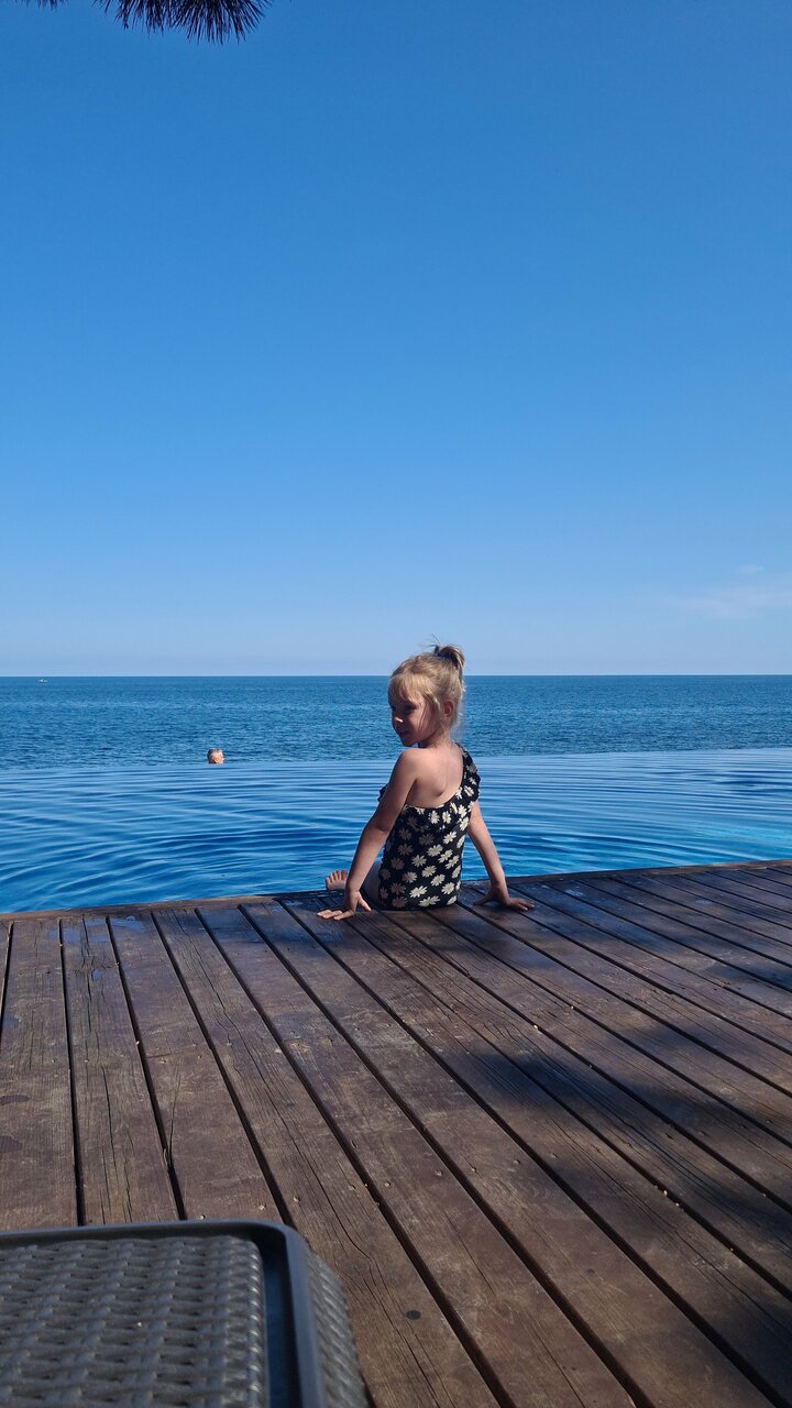 Изумительная природа, идеально чистое море и качественное питание из натуральных продуктов. Персонал не просто приветливый, а все реально отзывчивы и готовы помочь. На пляже всегда есть свободные шезлонги, а когда не хватает, то ставят дополнительно. Только по анимации можно было бы улучшить- как-то они не заинтересованы вовлечь детей в занятия, старая детская площадка и не работает верёвочный парк. Место достаточное уединённое, для тех кто не любит курортной суеты. Располагается на крутом склоне, поэтому к морю не особо удобные лестницы, с колясками и пожилым туда не советую. Были с ребёнком 5-ти лет, для него подъёмы проблем не составляли. Пишут про отсутствие детского меню, не знаю что в нем люди хотят видеть, но накормить ребёнка проблем не было.