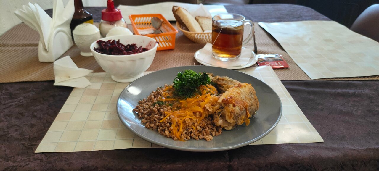 Замечательное место, после долгого путешествия! Несмотря на то, что мы приехали поздно вечером, нас встретил хозяин, Михаил Васильевич. Разместил в номере и даже организовал небольшой ужин (отличная ветчина, вкусный сыр, масло, свежий хлеб и молоко к чаю). В номере есть чайник, чайные пакетики, сахар и столовые приборы. В кафе большое, аппетитное меню, очень вкусные пельмени в горшочках. Большое спасибо, обязательно заедем ещё.