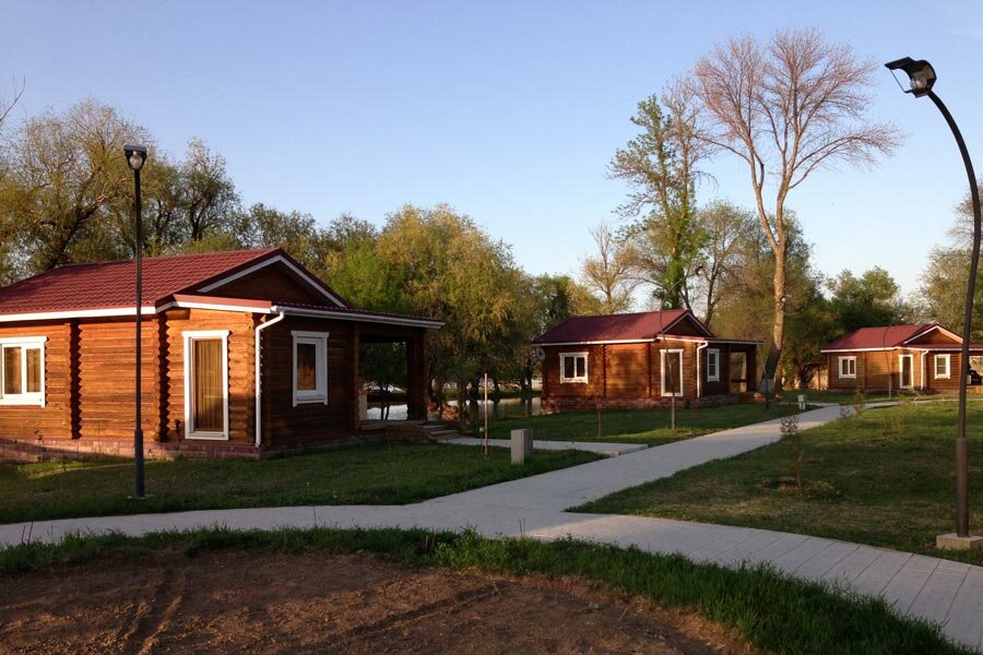Ни каких указателей и разбитая дорога при подъезде. Маленький зелёный оазис относительно всего вида за забором наверное один из плюсов. Проект был достаточно интересный лет наверное 10 назад. Если подремонтировать забор и участок будет огонёк) а так не достроен.(лишнего ничего не валяется, кроме старых фундаментов) Есть порядка 5 деревянных домов для проживания. В домах есть туалет душ спальные места. Есть телевизор но он не работает)), нету чайников. В нутри достаточно комфортно без лишних запахов и т.д. Тете Тамаре спасибо за завтрак и ужин. Нас даже спрашивали что бы мы хотели на ужин. Также можно попросить приготовить рыбу свежепойманую. Персонал помогает и почистить рыбу и с местами для рыбалки. Аренда егеря с лодкой стоит 3500 + бензин, наверное цены меняются от времени.