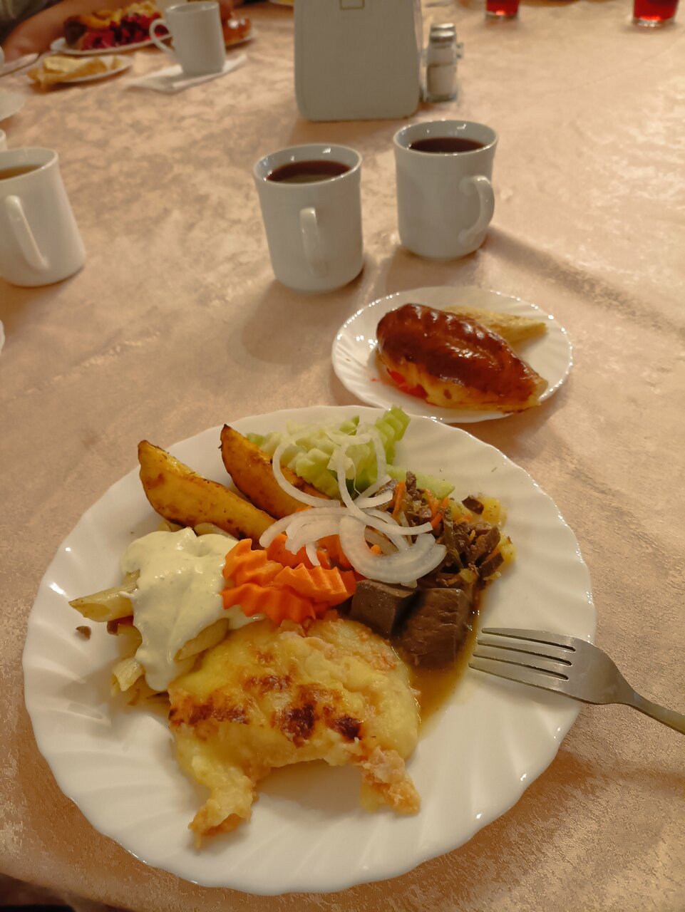 - Достойное питание (шведский стол, рыба, мясо, овощи).