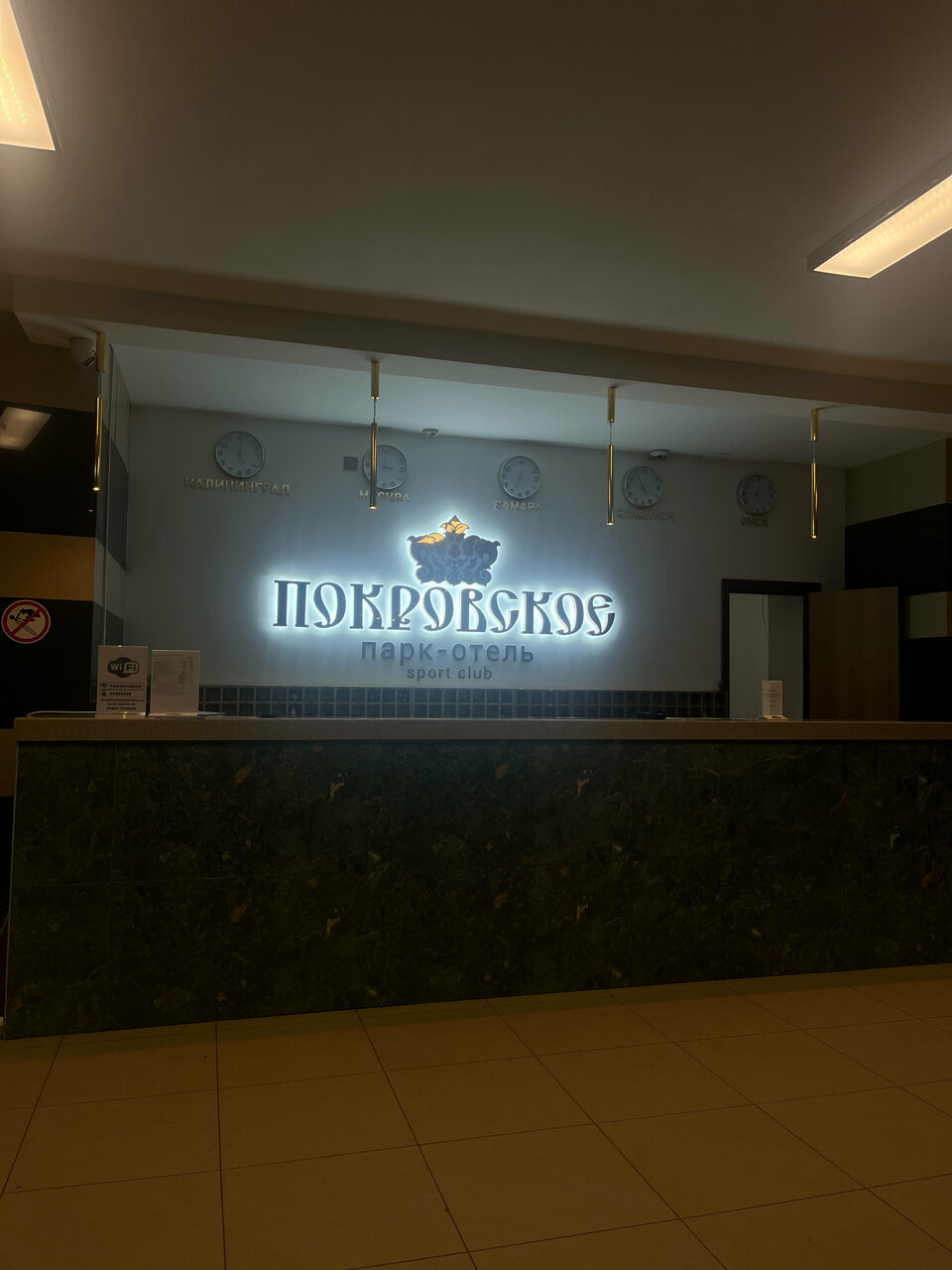 Приезжали в конце августа с ребенком на чемпионат области по шахматам. Что понравилось:1) безопасность – на охране стоят автоматчики, говорят, что с этого года в покровском такое нововведение, что в целом не может не радовать по сегодняшней обстановке в мире. 2) организация турнира – все было четко, вовремя, без проволочек, на закрытие приехал Карякин, настоящий душка. 3) территория отеля с озером и теплая погода – купались в озере до самого отъезда. 4) питание – приличный шведский стол, хоть и без изысков, но всегда были в наличии рыба, овощи, яблоки, мясо и выпечка.. Не понравилось: очередь на ресепшн при заселении – ждали 2 часа, хотя за стойкой было 6 или даже 7 человек заселение проходило очень медленно, уборка в номере, как оказалось, только по запросу и первые 2 дня у нас не выносили мусор. В итоге все скрасило призовое место ребенка, грамота и медаль чемпионата.