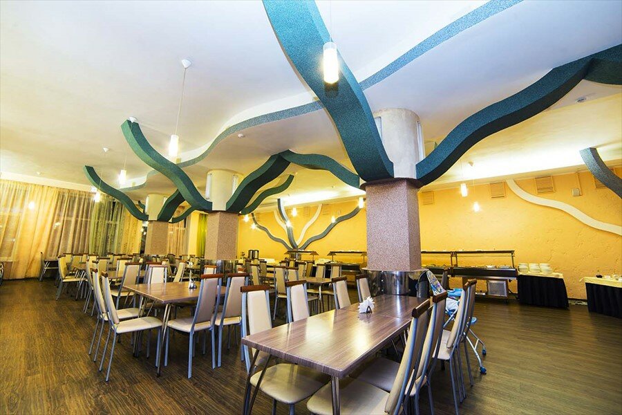Очень красивая территория и озеро. Пансионат обслуживает детские спортивные школы.90 % отдыхающих дети. Номера и обстановка в столовой очень скромные, как в пионерском лагере.Вместо двух кроватей в номере для двоих могут стоять четыре.Питание нормальное.На завтрак каша, запеканка , омлет,сыр, ветчина, блинчики.На обед и ужин суп, плов,котлеты, печень, рыба,картошка,овощи.Всегда есть выпечка.Для цены заезда очень неплохо. Что ценно ночью было тихо,никто не пил пиво и не курил на балконе.