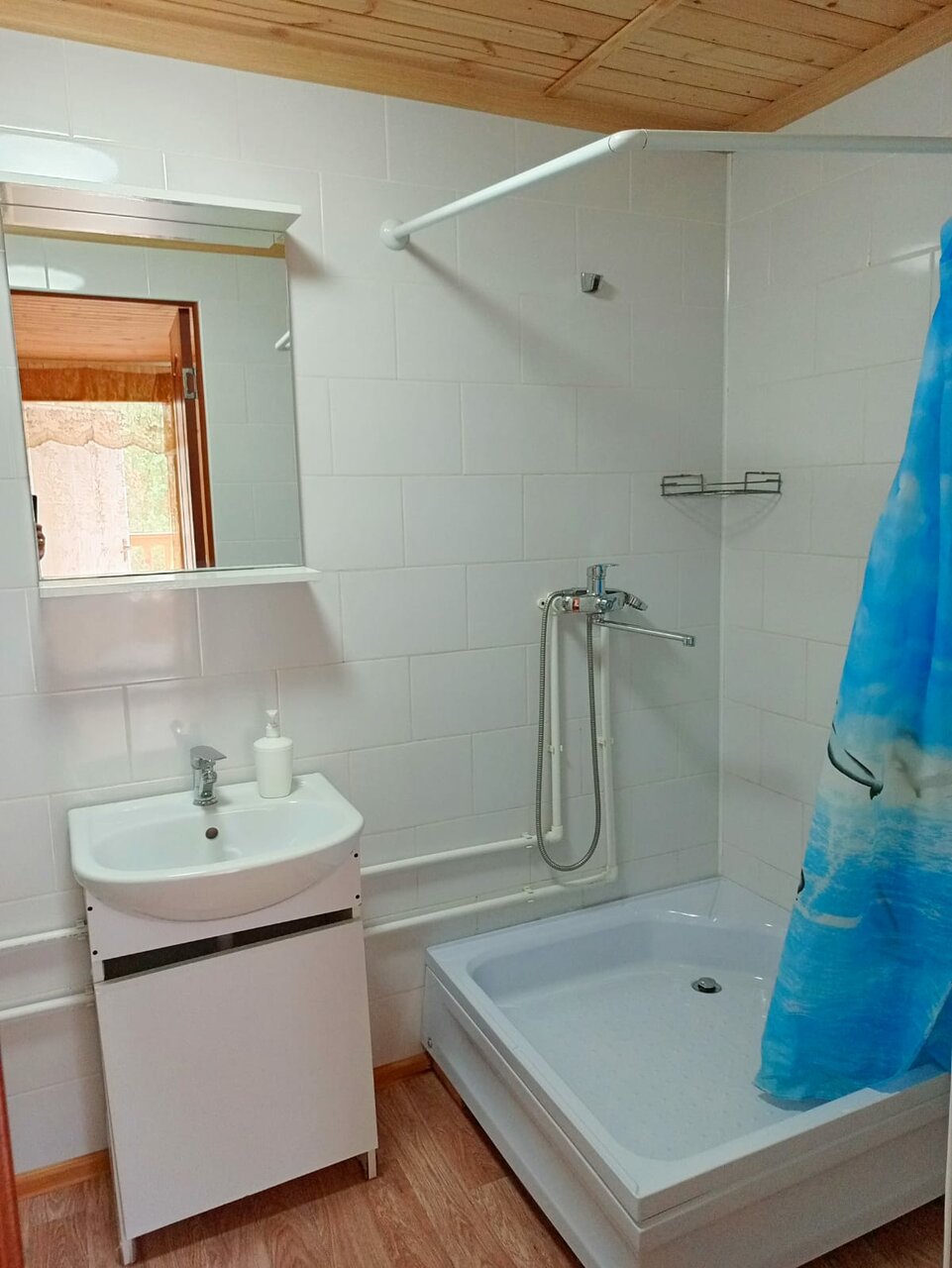 Очень хорошая гостиница для ночевки в дороге. Расположение удобное, рядом с трассой. В номере было чисто, кровати и матрасы вполне удобные, постельное белье выдали при заезде. На окне сетка, комаров не было, в каждом номере кондиционер, ночью в жару включали, было комфортно. В ванной все чисто, единственный минус — в душевой не сходила вода из поддона. Горячая вода из нагревателя. В гостинице есть кипятильник, где можно набрать воды, во дворе уютная беседка посидеть покушать. Хозяйка накормила нас вкусным завтраком и ужином за очень приятную цену! Хозяева всегда рядом и все вопросы помогают решить моментально) очень довольны нашим выбором!