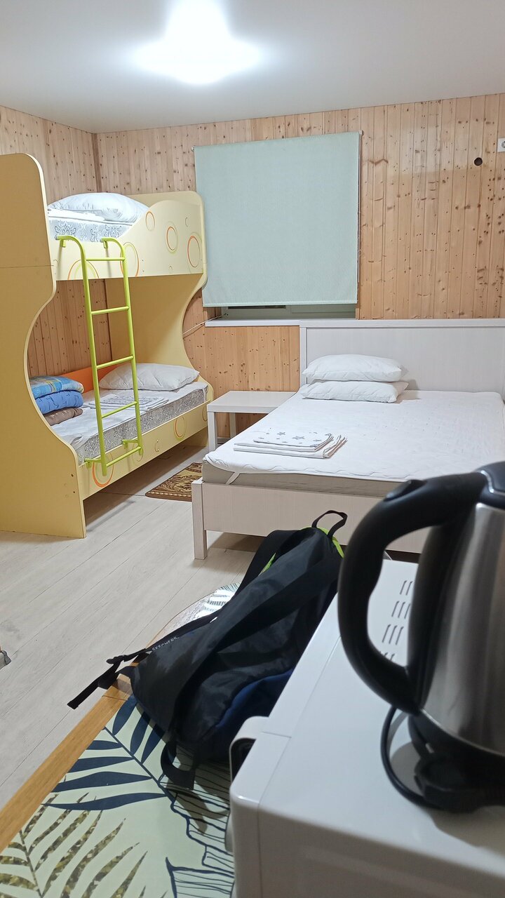 Отличный, уютный номер. Все идеально чисто, удобные кровати. Чистое постельное белье и полотенца. Все продумано до мелочей. В номере есть кондиционер, чайник, чашки, чай, кофе, сахар, холодильник и даже фен. Спасибо огромное за тёплый приём.