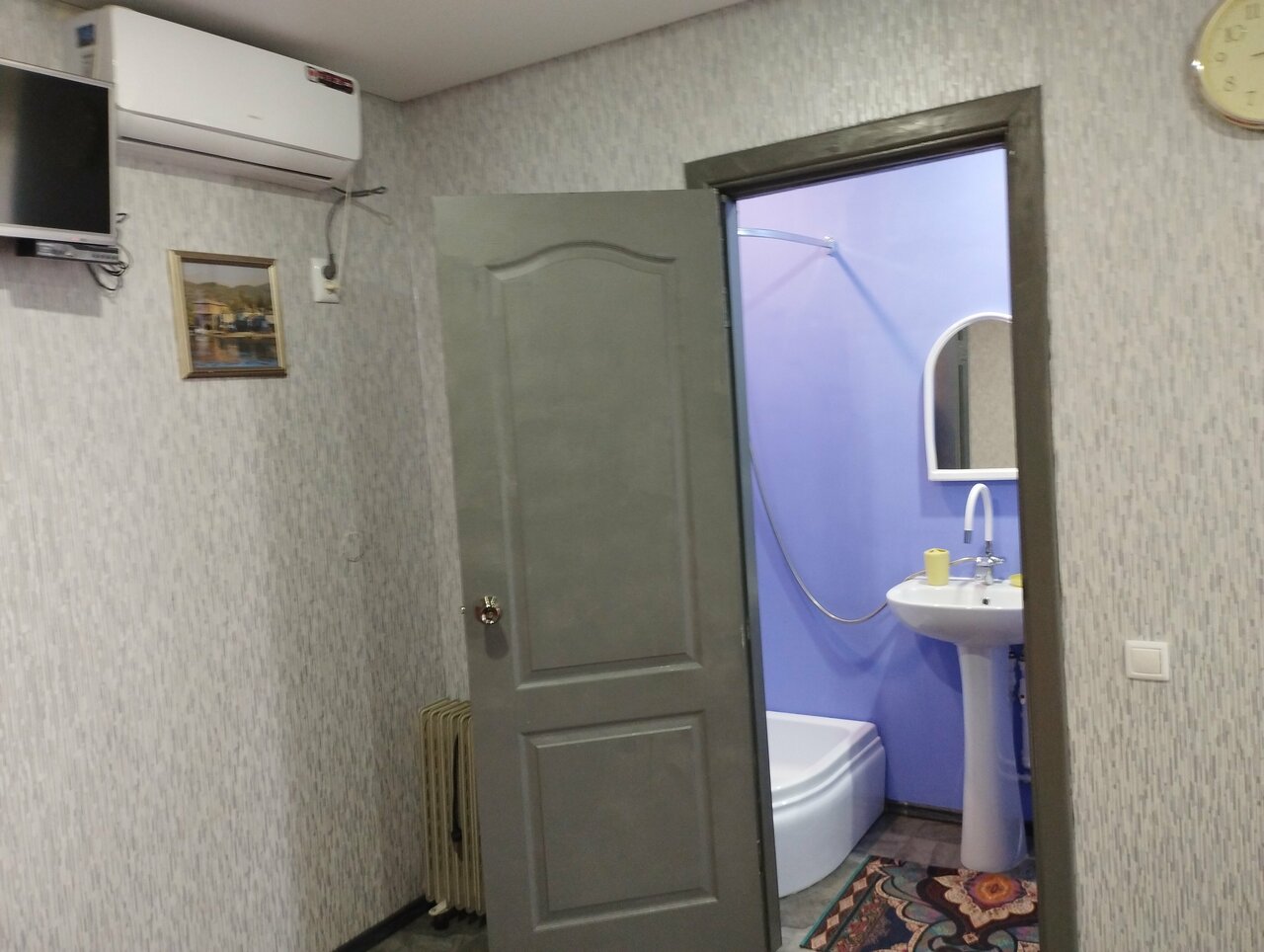 Гостевой дом маленький, всего 3 номера. В номере очень чисто. Свежий ремонт, новая мебель. Телевизор, кондиционер, душ, мыло и гель для душа в наличии. Холодильник на улице, общий, чайник там же. Есть пакетики чая,кофе и сахар. Очень достойный вариант всего за 2000 р. Многие отели вдоль трассы стоят дороже, но по своему состоянию даже рядом не стоят с этим гостевым домом. Минус для меня- очень большие подушки, спать неудобно. И будьте готовы, что в посёлке со связью беда, интернет не работает совсем.