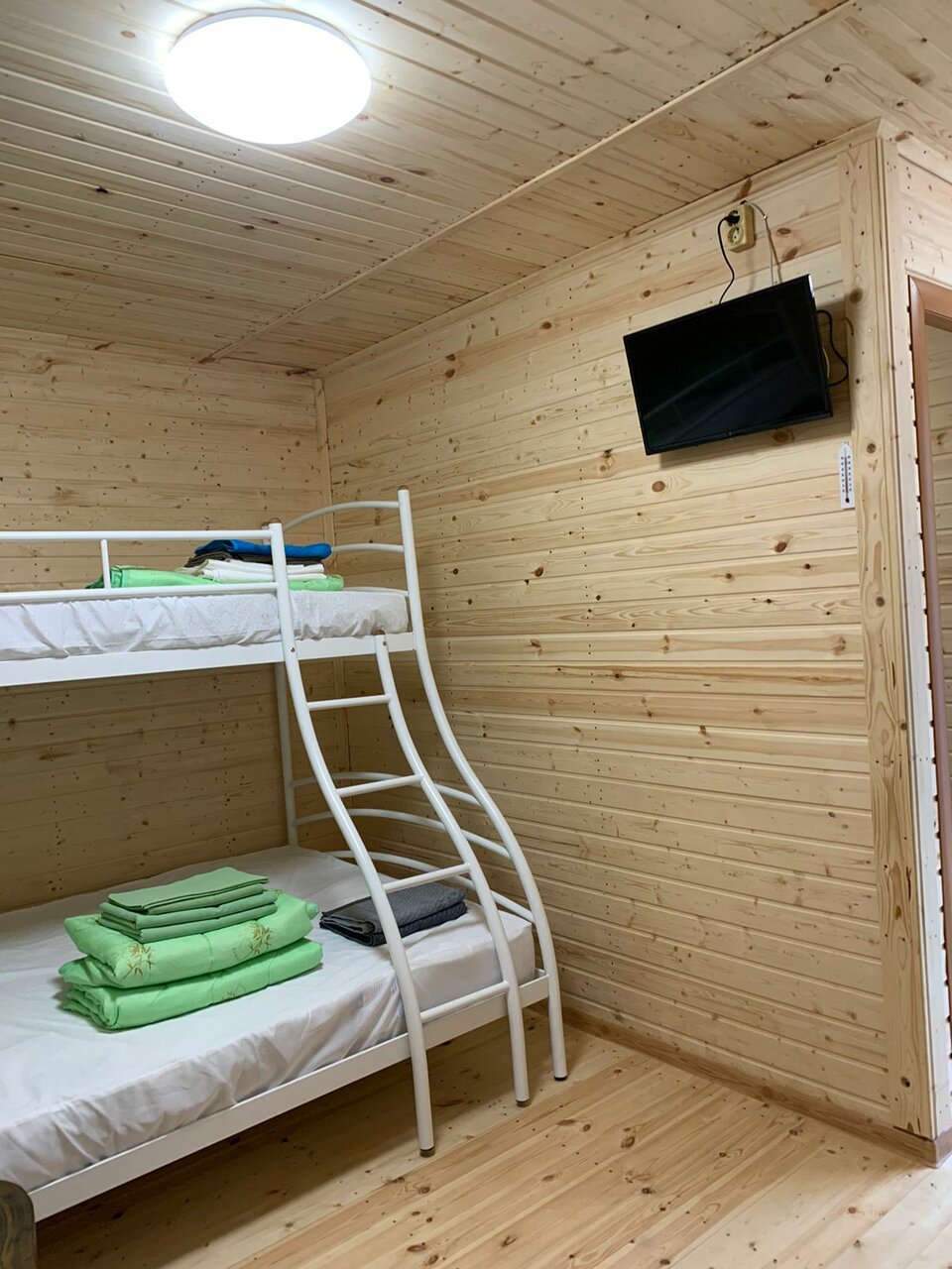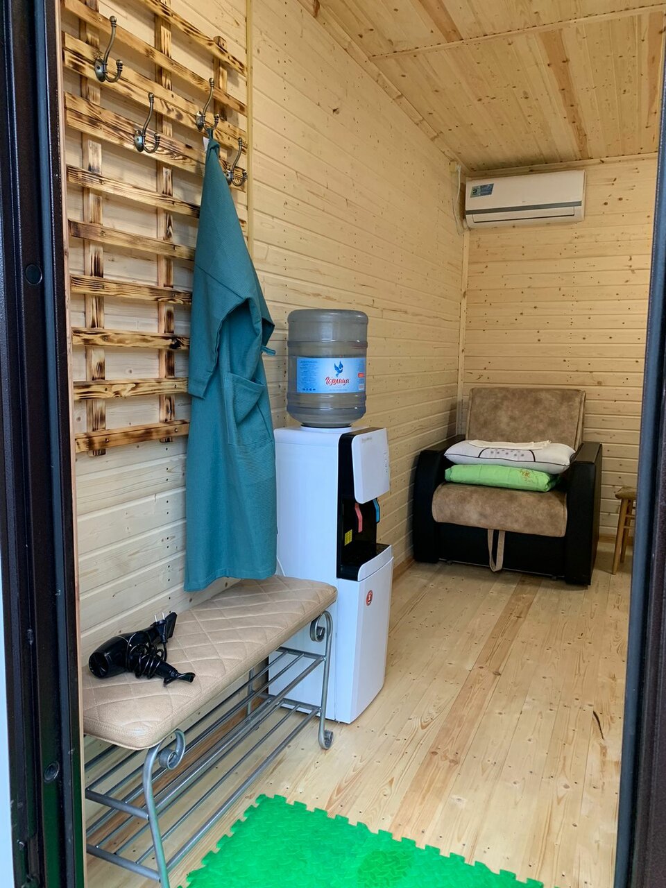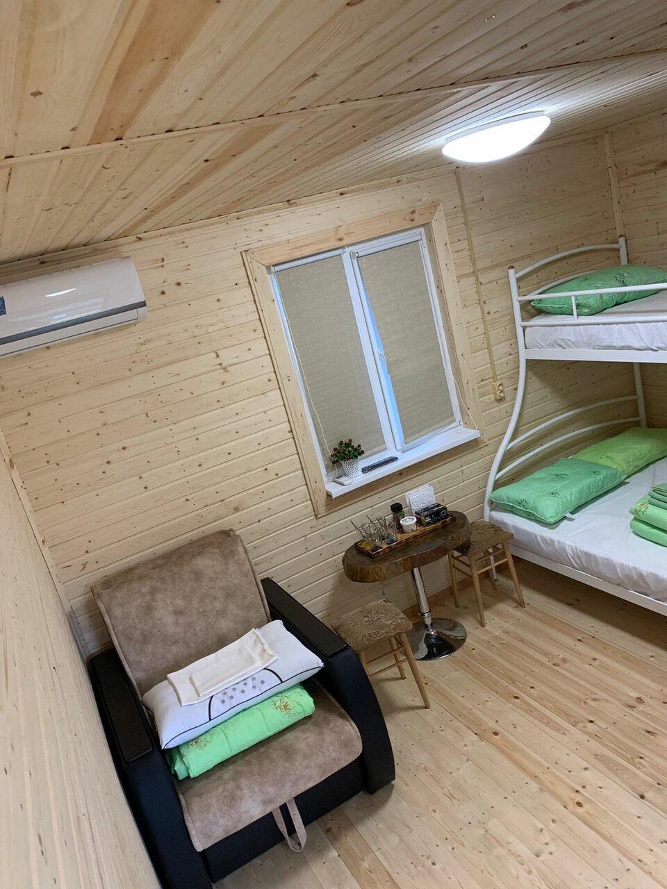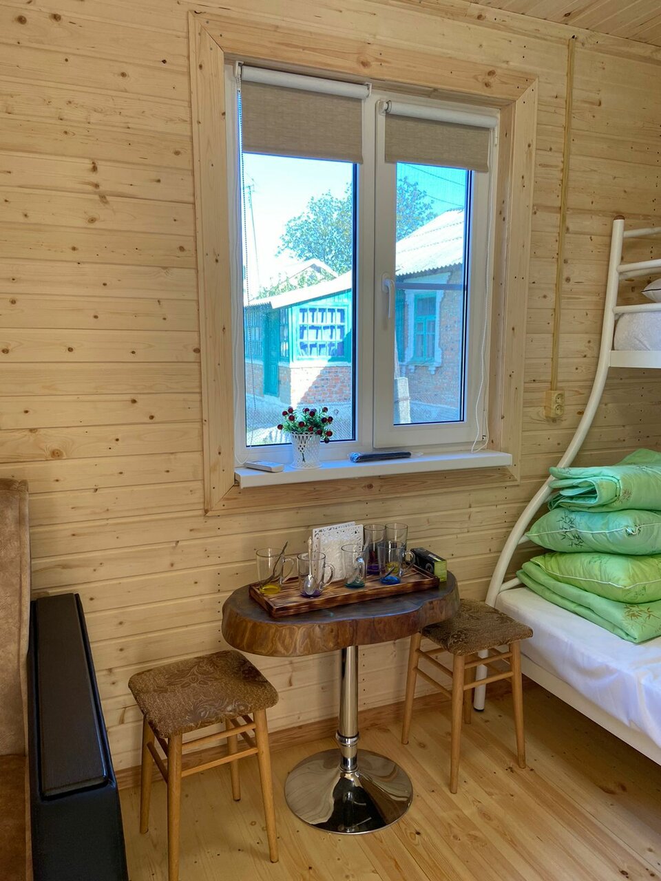 Деревянный дом с отдельной территорией. Со всеми удобствами: кондиционер, ТВ , холодильник , халат , туалетные принадлежности , тапочки , кулер с водой , фен.Дом отлично подойдет для отдыха от городской суеты и для уставших на трассе водителей.
