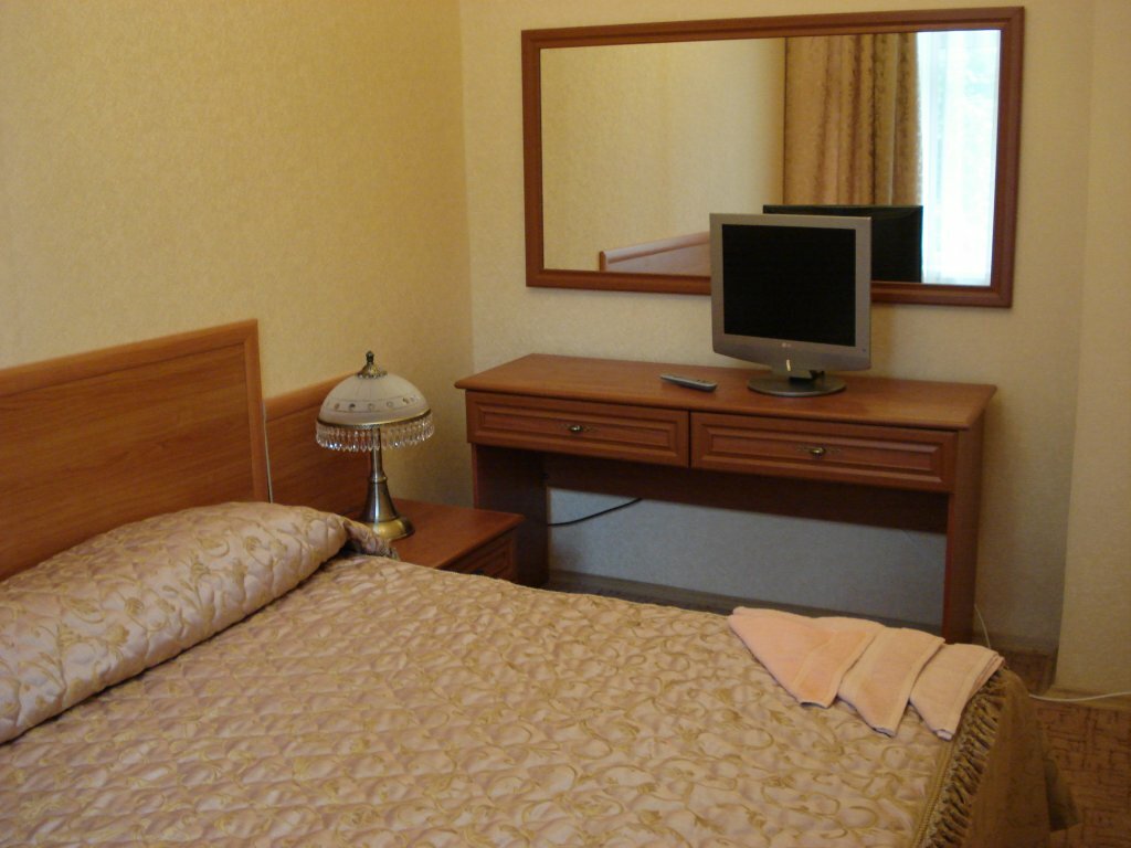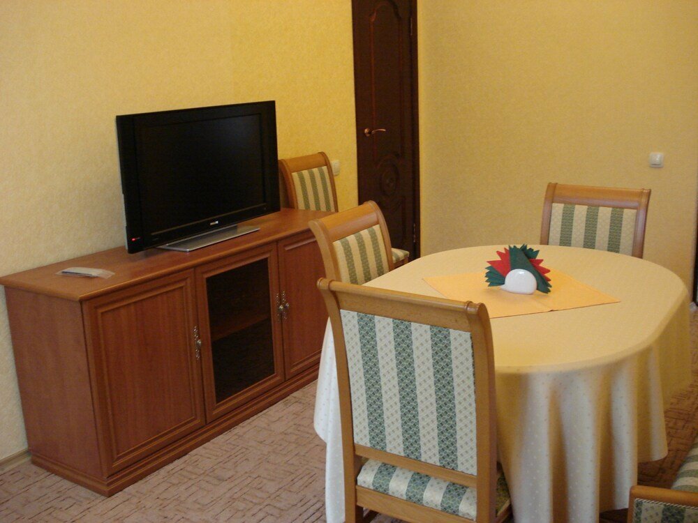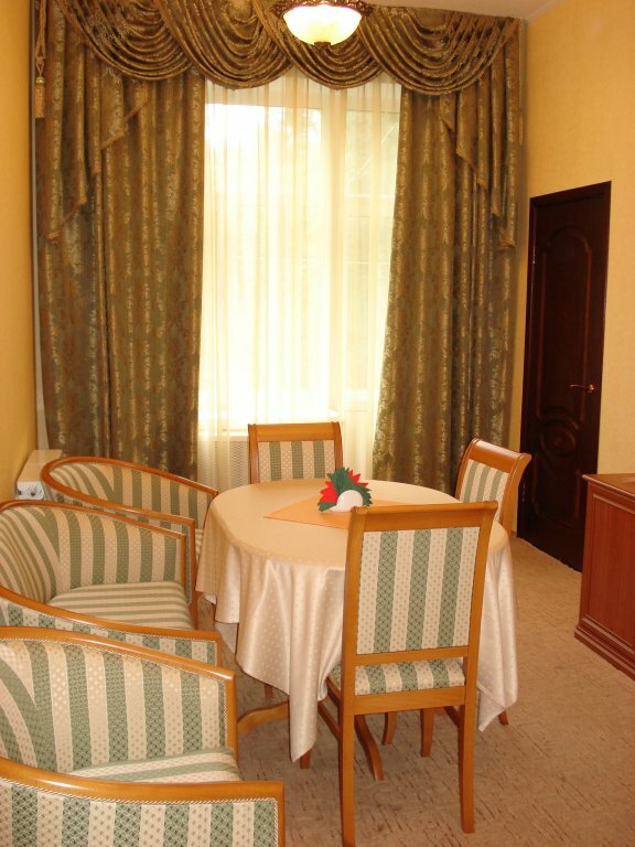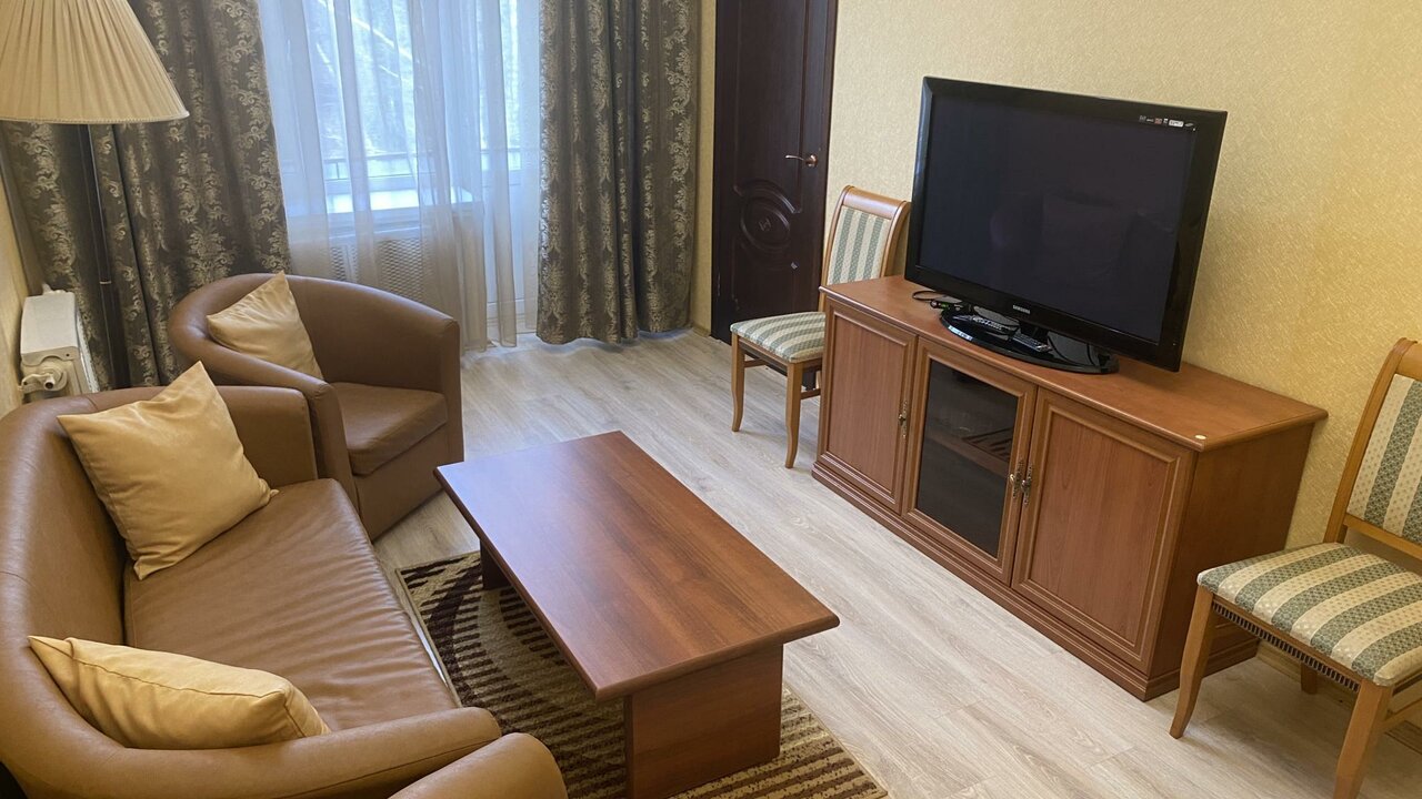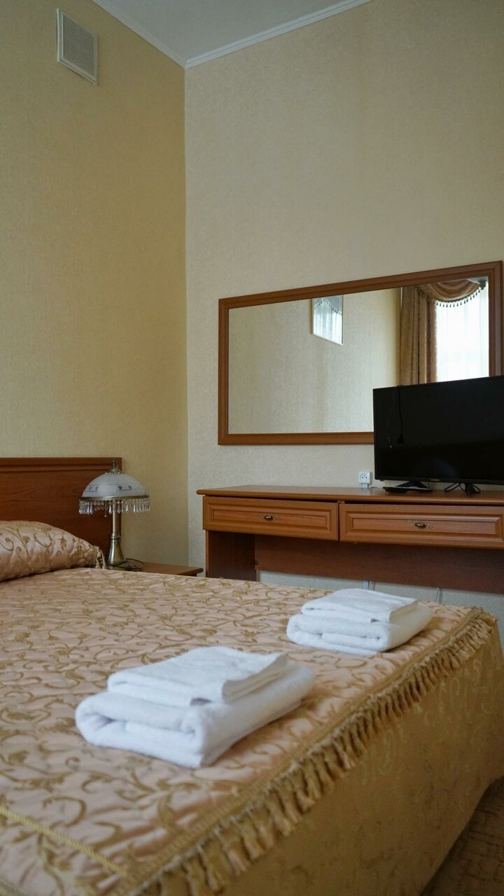 Не предупредили, что идёт ремонт фасадов, сначала испугало, но не очень мешало. Столовая закрыта, тоже никто не предупредил. Бронировали на Суточно.ру, там указано: ‘завтрак за доп. плату’. Администратор в день заселения неприветливая. Номер Семейный люкс убогий, стол сломан, мебель вся старая, ковровое покрытие в комнатах грязное, окна грязные. Телевизоры не работали, починили позже. Из плюсов: постельное бельё чистое, кровати удобные, т. е. переночевать можно. Но называть Люкс ну совсем не стоит. Запущенная территория, вонючий пруд с утками. Утром в понедельник пришли на работу сотрудницы в кабинеты рядом на этаже, ещё 8ми часов не было, поспать не удалось.