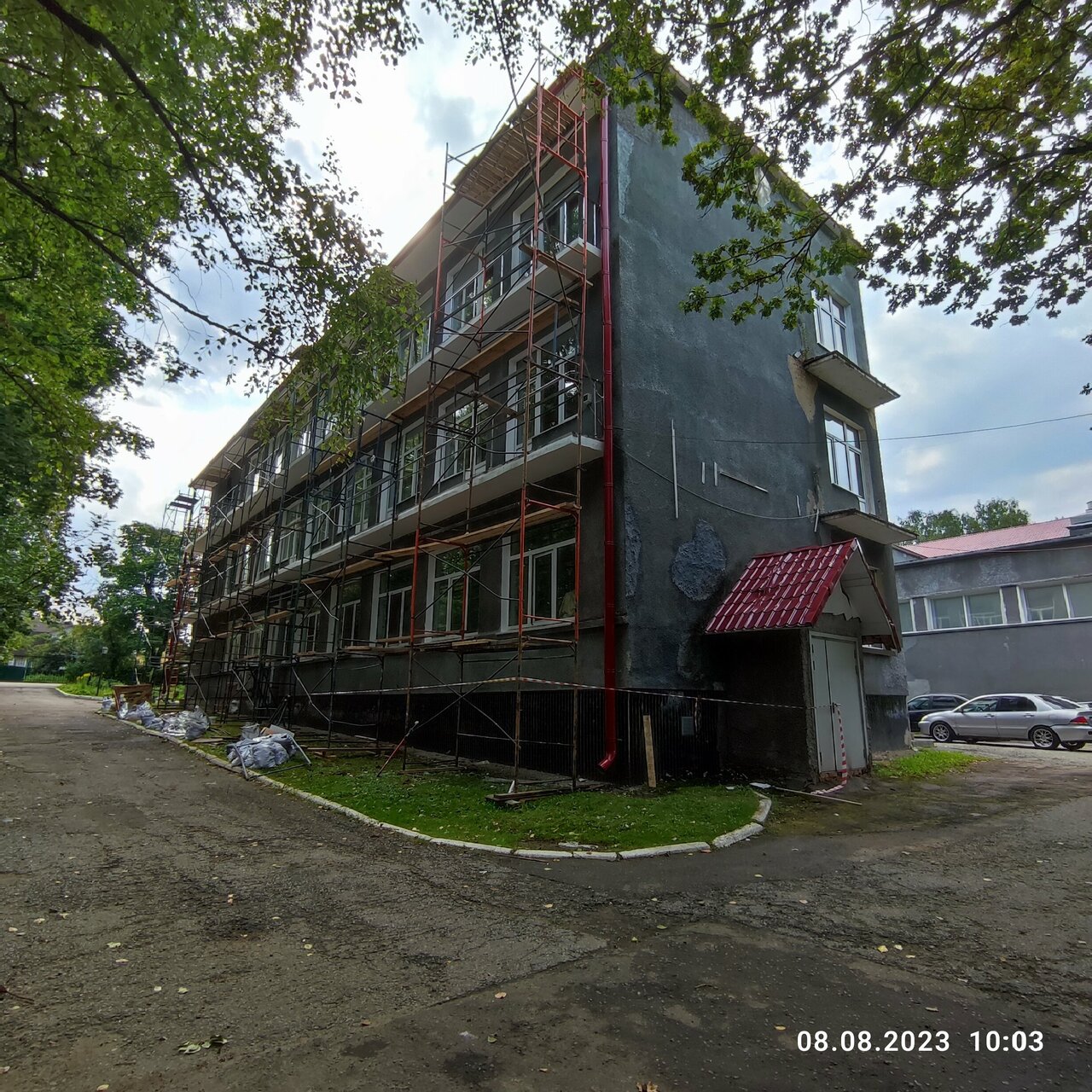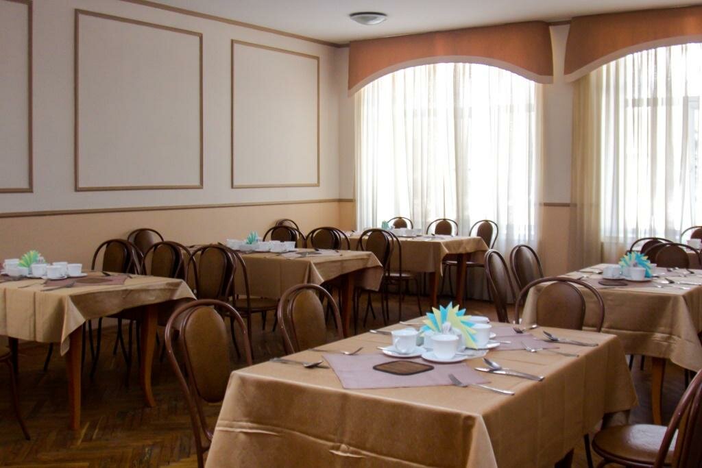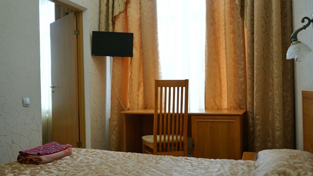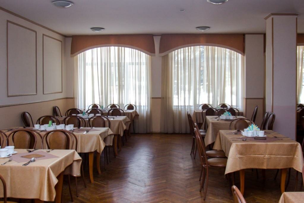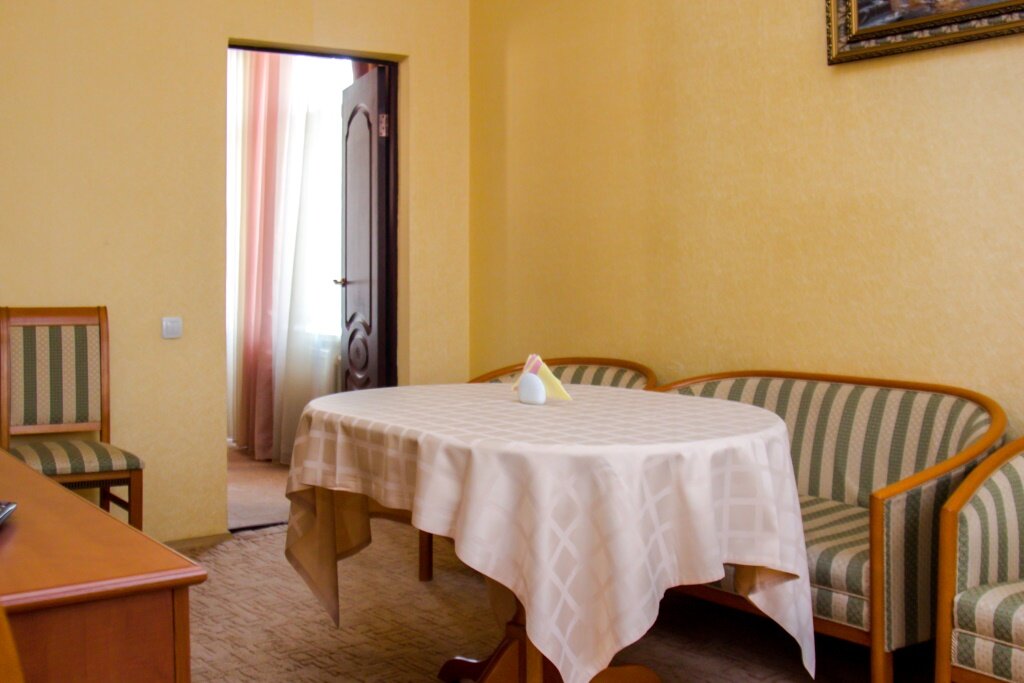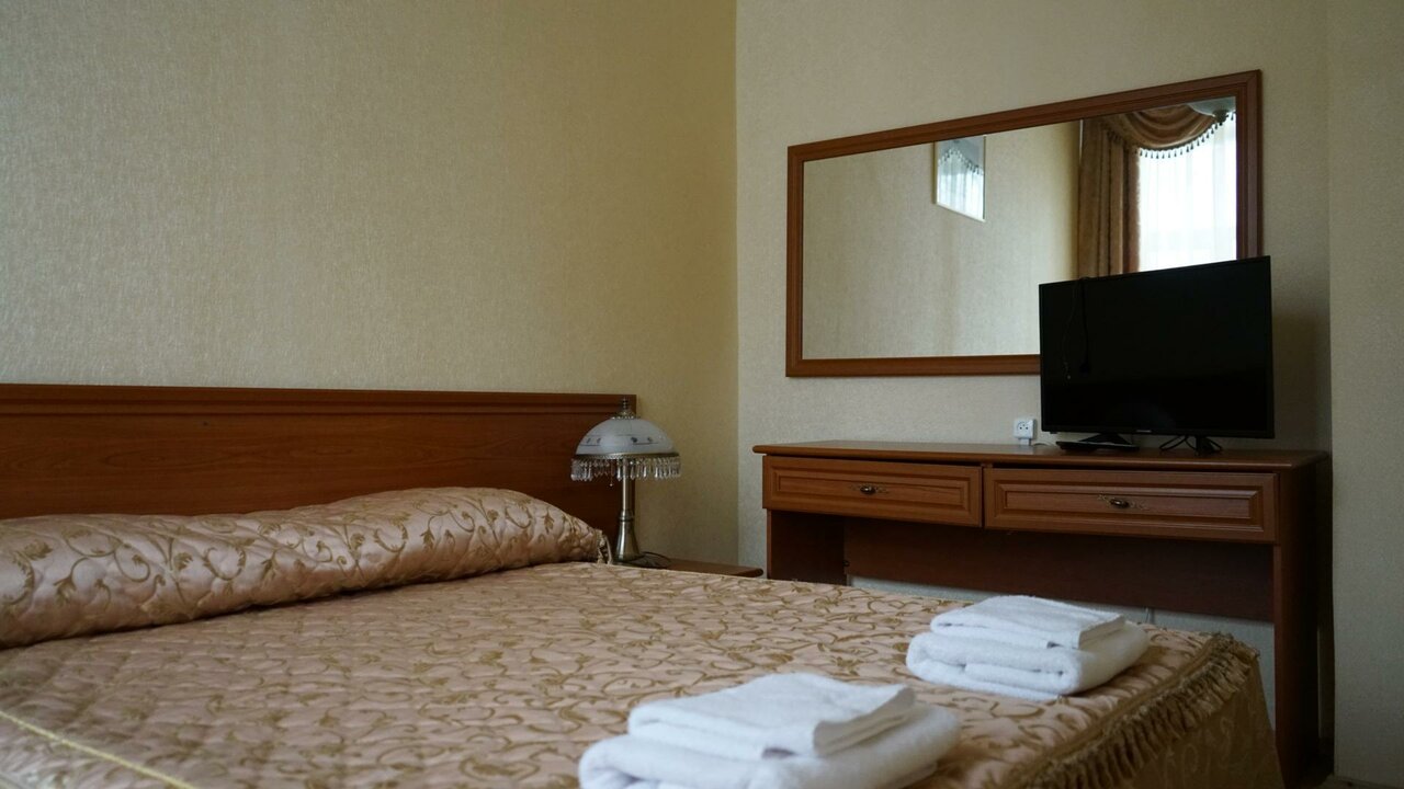 Не предупредили, что идёт ремонт фасадов, сначала испугало, но не очень мешало. Столовая закрыта, тоже никто не предупредил. Бронировали на Суточно.ру, там указано: ‘завтрак за доп. плату’. Администратор в день заселения неприветливая. Номер Семейный люкс убогий, стол сломан, мебель вся старая, ковровое покрытие в комнатах грязное, окна грязные. Телевизоры не работали, починили позже. Из плюсов: постельное бельё чистое, кровати удобные, т. е. переночевать можно. Но называть Люкс ну совсем не стоит. Запущенная территория, вонючий пруд с утками. Утром в понедельник пришли на работу сотрудницы в кабинеты рядом на этаже, ещё 8ми часов не было, поспать не удалось.