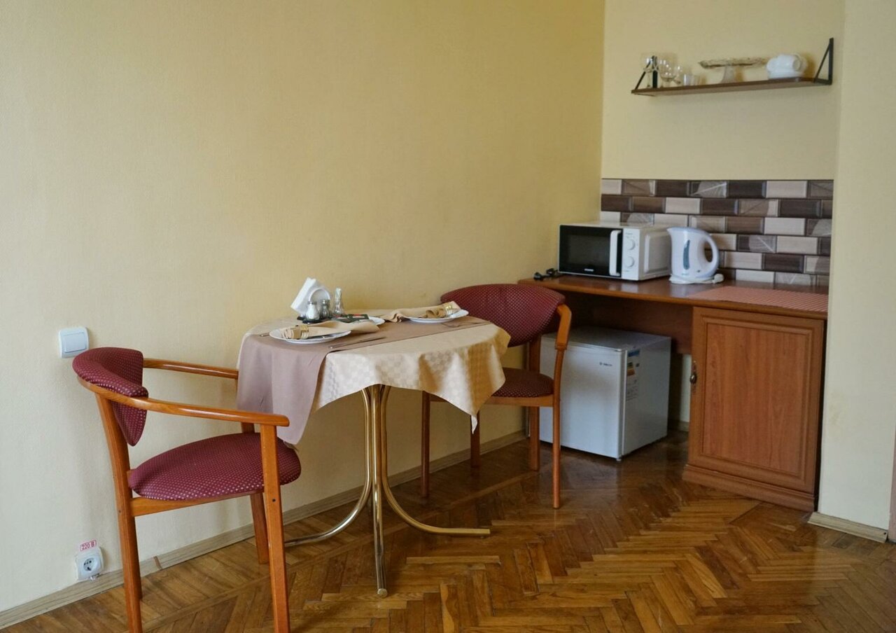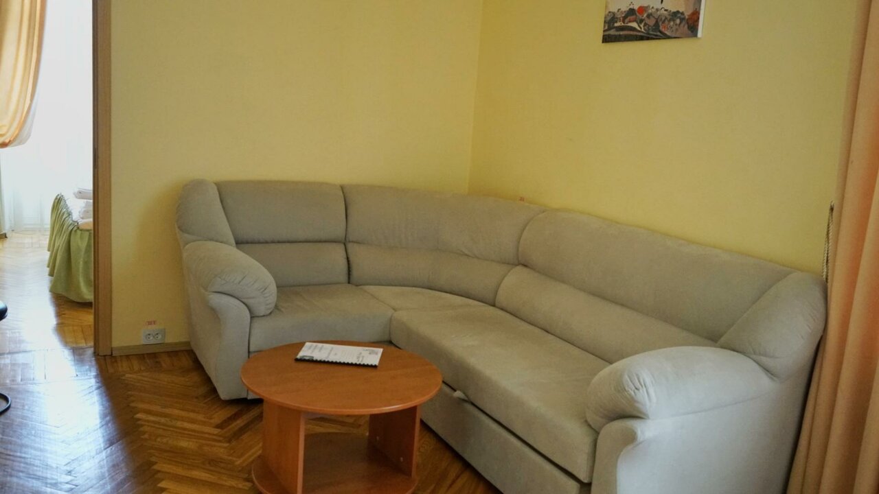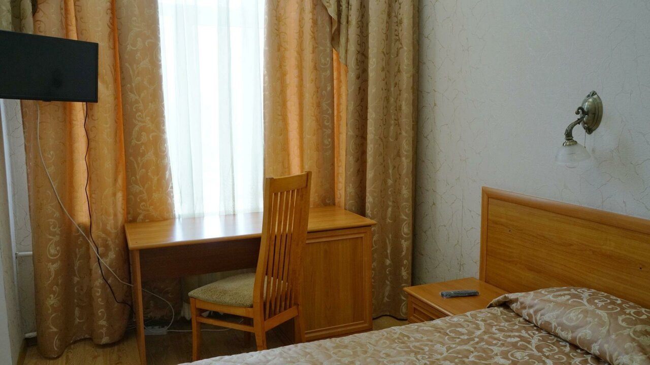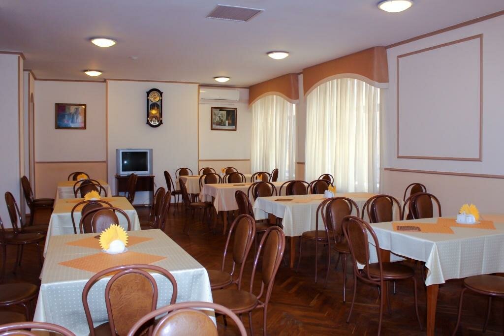 Не предупредили, что идёт ремонт фасадов, сначала испугало, но не очень мешало. Столовая закрыта, тоже никто не предупредил. Бронировали на Суточно.ру, там указано: ‘завтрак за доп. плату’. Администратор в день заселения неприветливая. Номер Семейный люкс убогий, стол сломан, мебель вся старая, ковровое покрытие в комнатах грязное, окна грязные. Телевизоры не работали, починили позже. Из плюсов: постельное бельё чистое, кровати удобные, т. е. переночевать можно. Но называть Люкс ну совсем не стоит. Запущенная территория, вонючий пруд с утками. Утром в понедельник пришли на работу сотрудницы в кабинеты рядом на этаже, ещё 8ми часов не было, поспать не удалось.