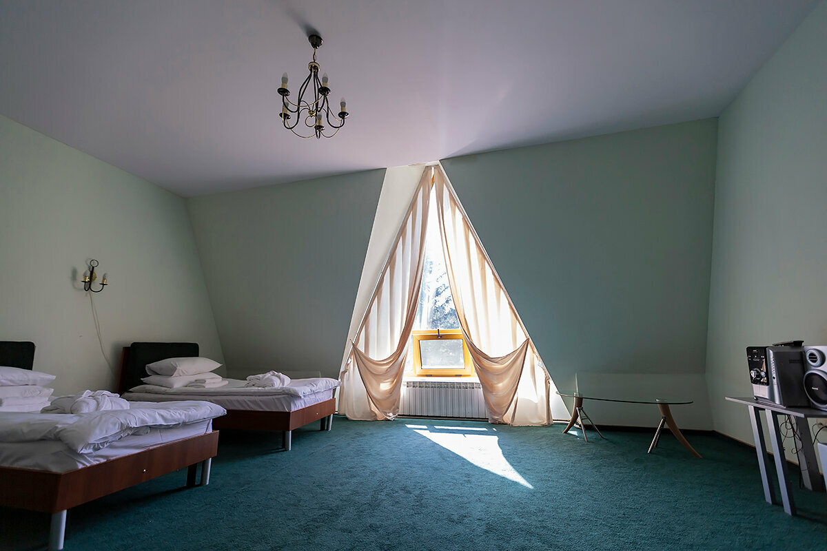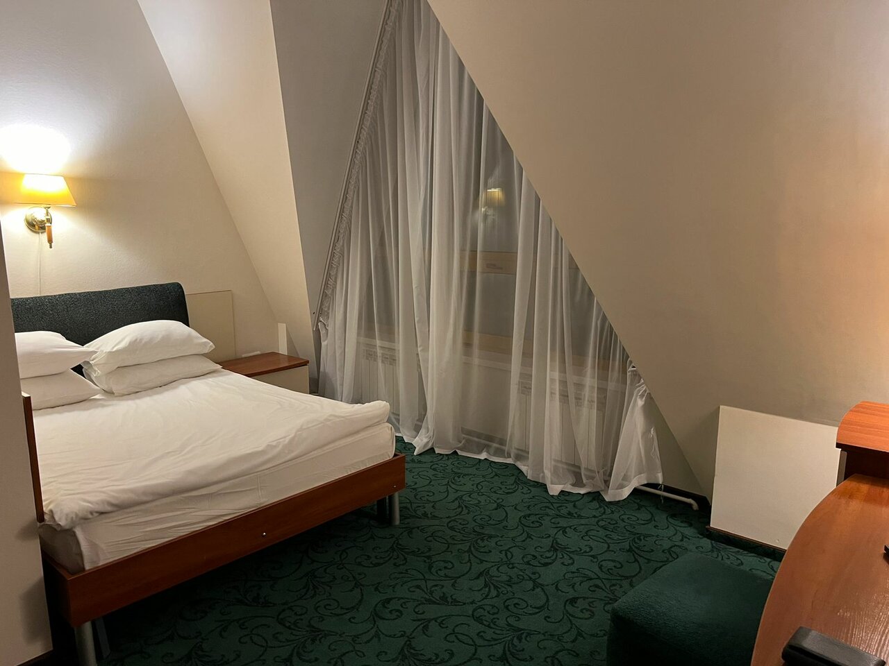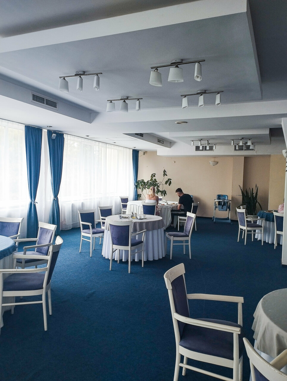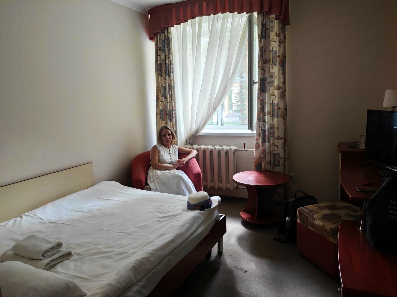 Внимание! Тут нет кондиционеров!!! Плюс один — Отличное расположение на берегу Волги, песчаный пляж, тишина, сосны. Сам отель — ультра-эконом-экономыч, провинциальный дизайн из 90-х, низкие потолки, все довольно ушатанное. Питание по меню съедобное, завтраки в стоимости номера — отвратительные и несъедобные, пришлось уезжать за нормальной едой в сторону твери. А ценник как за иные четырехзвездочные отели в отдалении от берега. В общем за купанием сюда ехать стоит, но отель еле еле до трешки дотягивает.
