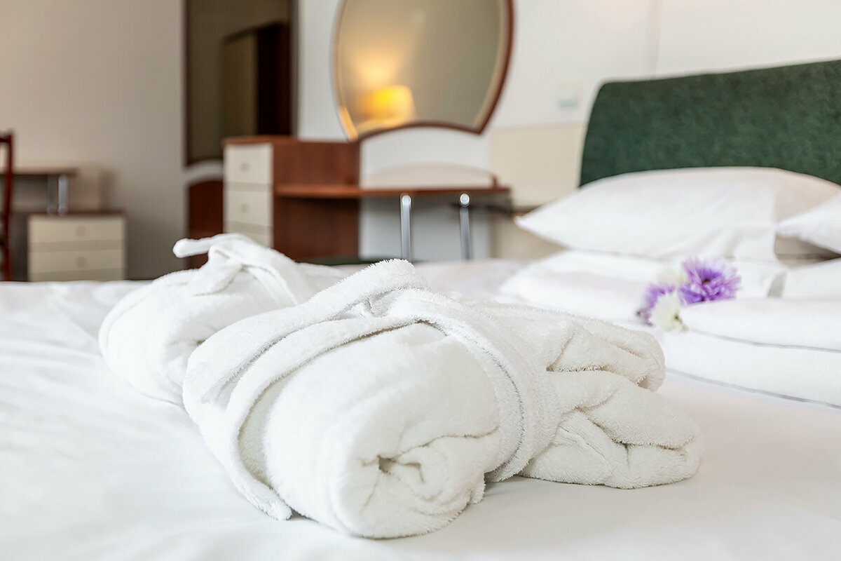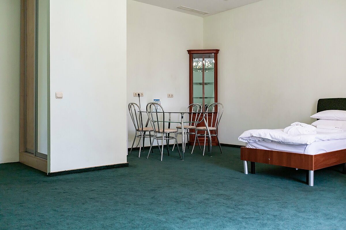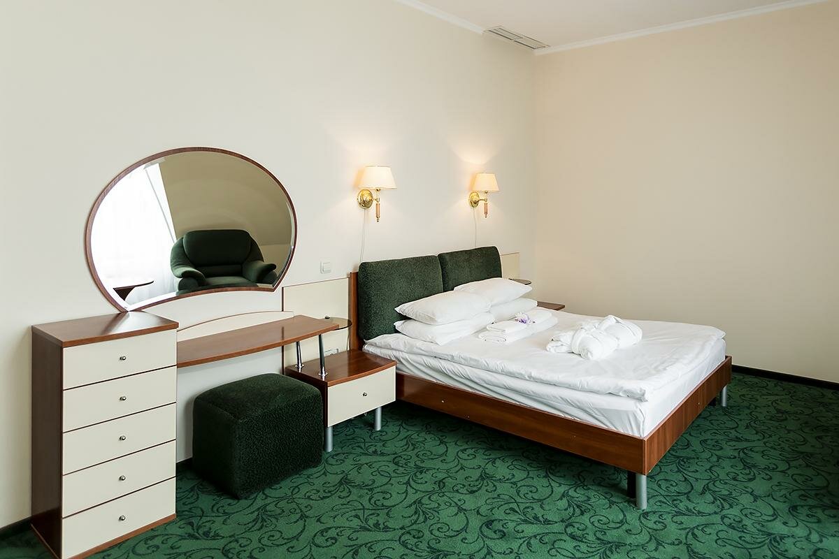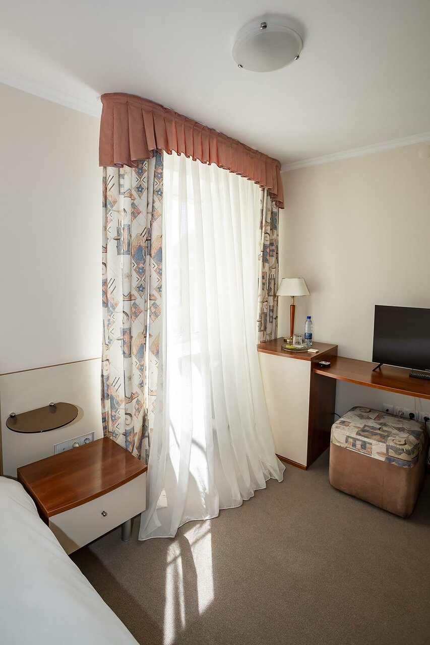 Внимание! Тут нет кондиционеров!!! Плюс один — Отличное расположение на берегу Волги, песчаный пляж, тишина, сосны. Сам отель — ультра-эконом-экономыч, провинциальный дизайн из 90-х, низкие потолки, все довольно ушатанное. Питание по меню съедобное, завтраки в стоимости номера — отвратительные и несъедобные, пришлось уезжать за нормальной едой в сторону твери. А ценник как за иные четырехзвездочные отели в отдалении от берега. В общем за купанием сюда ехать стоит, но отель еле еле до трешки дотягивает.