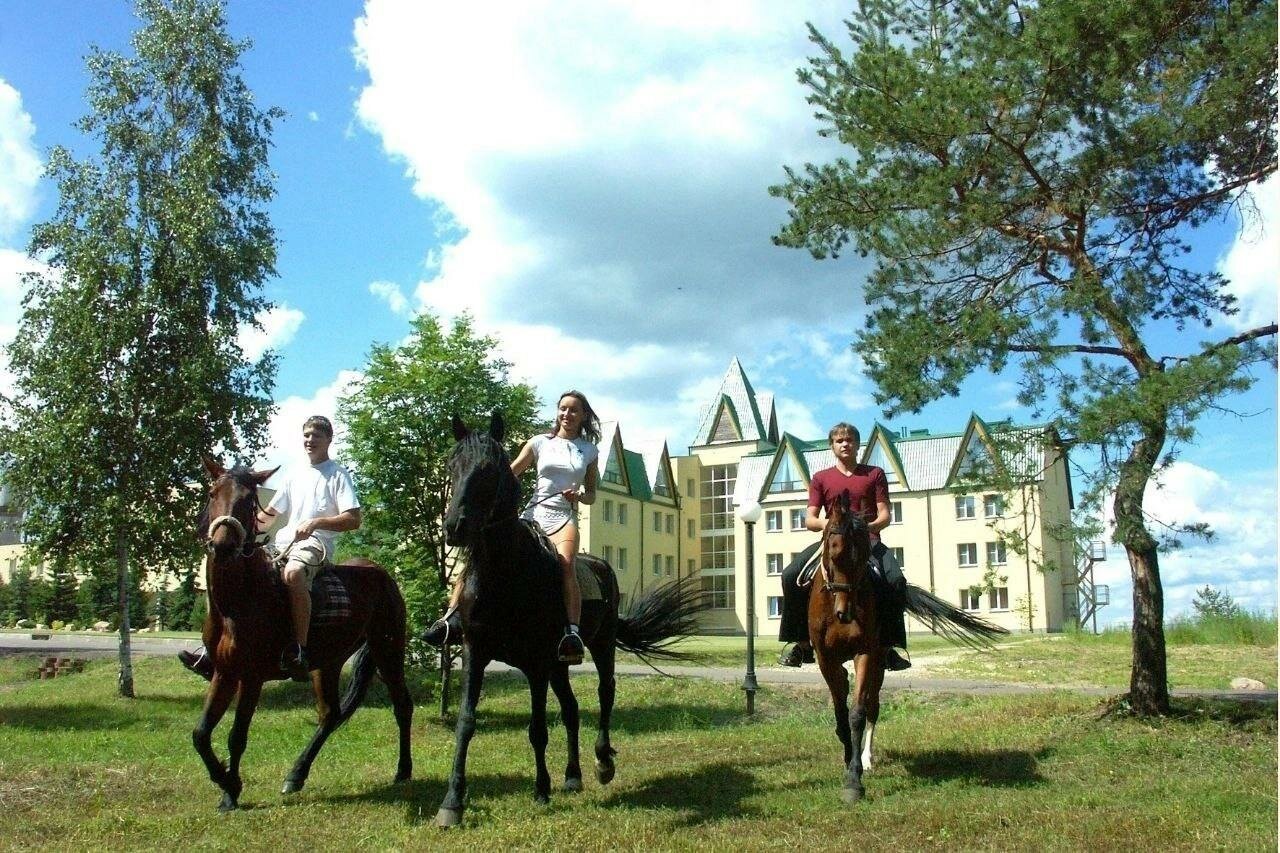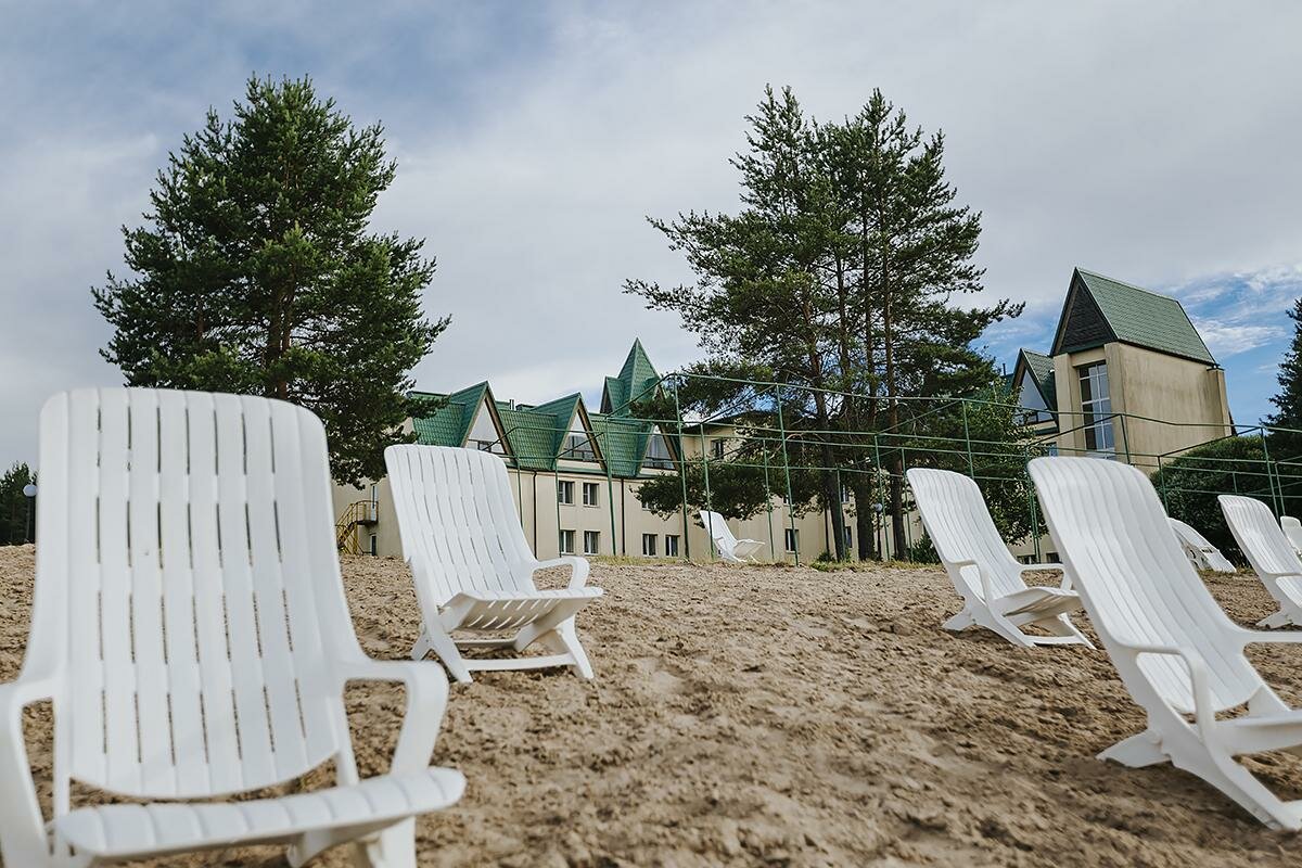 Удобства: ✔ Бесплатная парковка, Wi-Fi, трансфер (платный/бесплатный) ✔ Номера с санузлом, холодильником, ТВ, феном ✔ Питание: завтрак, полупансион, полный пансион (по меню) ✔ Собственный песчаный пляж, баня, активный отдых (рыбалка, волейбол, катание на лошадях) ✔ Услуги: конференц-зал, банкет, детские кроватки, прокат велосипедов