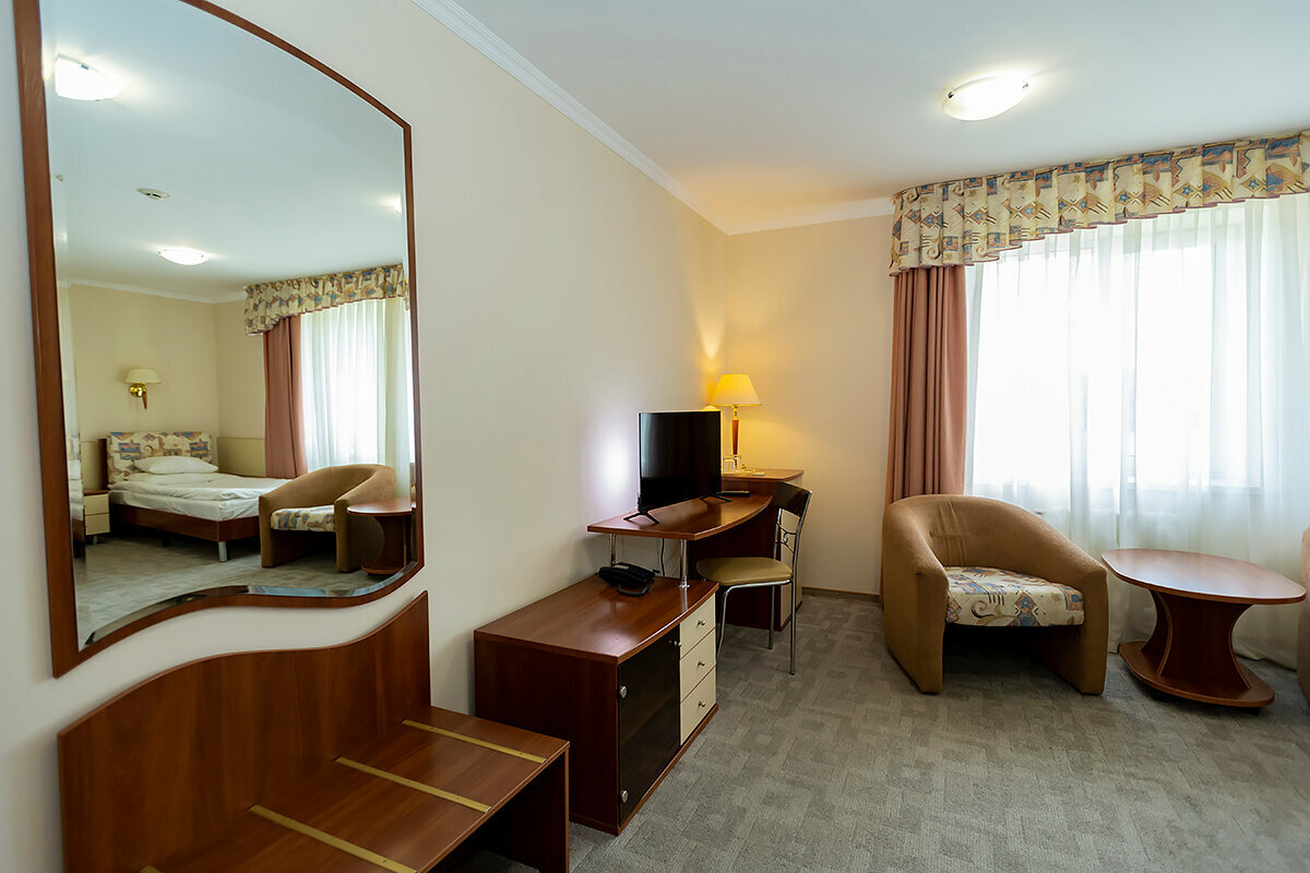 Большой минус нет бассейна и возможности сделать массаж, территория огромная, но не ухоженная, много мусора строительного вокруг, номера с привкусом совдепа, питание приличное, только после 10 вечера с большим трудом допроситесь продать кусок хлеба, даже в пятницу вечером