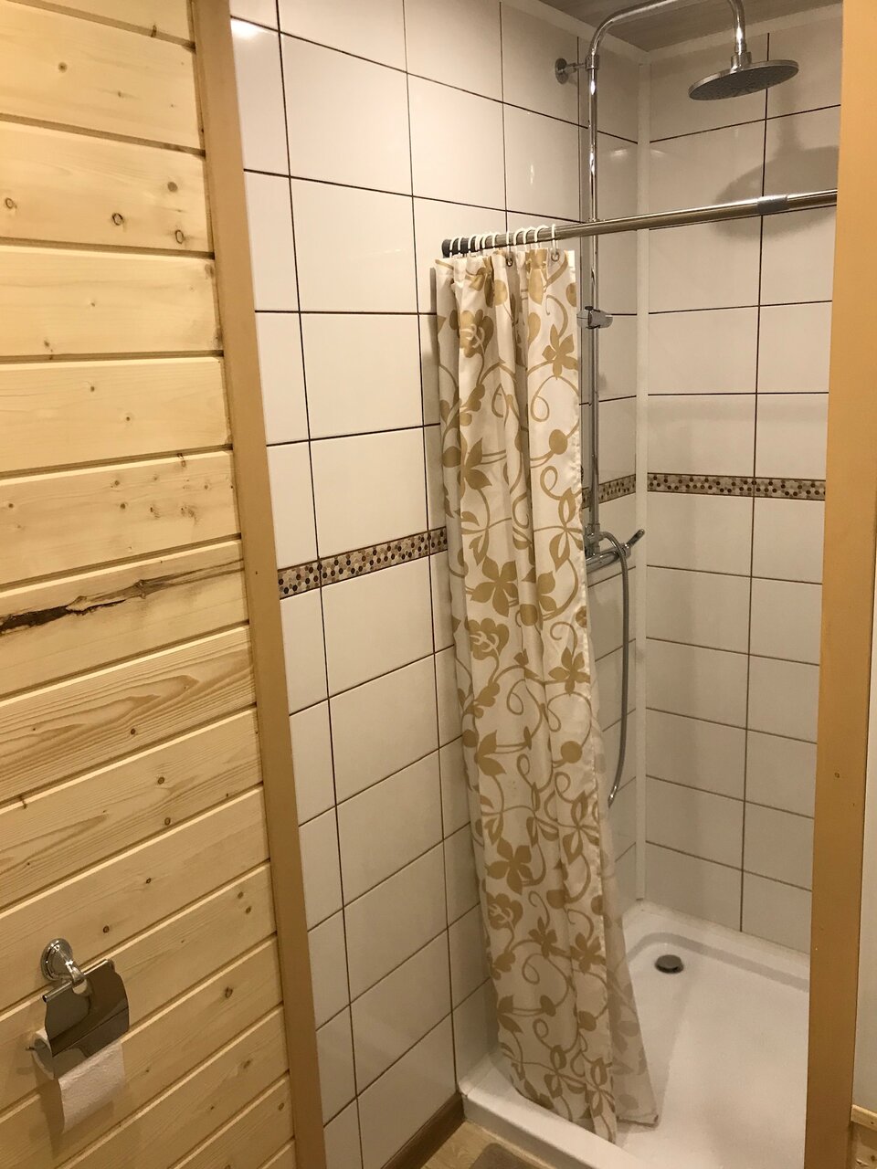 Выбрали эту гостинцу, т.к. это оказался самый дешевый вариант для ночлега для двоих. Остальные размещения в между Медвежьегорском и Петрозаводском — это домики в лесах для больших компаний. При этом и здесь был номер ‘на четверых’. Не представляю, как в нем могут разместиться 4 человека, т.к. пройти между кроватью и столом можно только боком, а для вещей предусмотрены 4 крючка при входе. Если бы убрали лишние кровати или второй ярус и оставили два спальных места, то такая стоимость для двоих была бы больше оправдана, т.к. хотя бы комфортно было. Матрасы старые, грязные и пролёжанные, простыни с них сползают, раковина в душевой — как в самолете, можно было бы и побольше поставить, там место позволяет. Окно крошечное, и из-за тесноты его можно лишь немного приоткрыть, спать невыносимо душно при 20 градусах на улице. Это оказалось самое дорогое и самое ужасное размещение за всю нашу поездку, а мы объездили на машине весь Кольский, Карелию, Приладожье и Выборг.