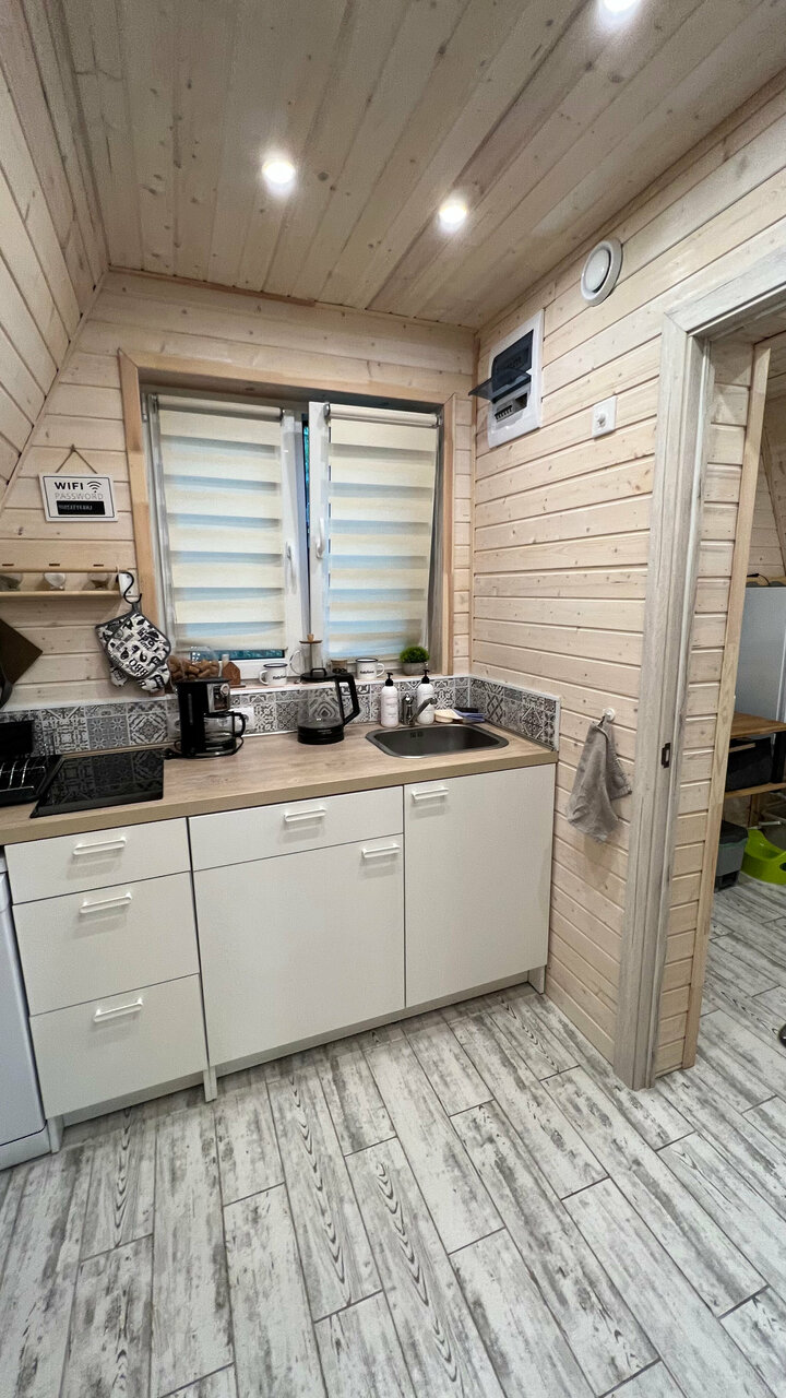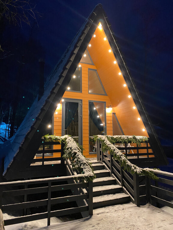 В общем и целом, очень довольны. Полноценные отельные домики. Единственное, что тапочек нет. Вся посуда, столовые приборы, даже специи есть. В домиках тепло, и буржуйка прогревает — будь здоров. Интернет хороший, стабильный. На телевизоре есть все приложения для кино/сериалов. С водой нюансы: вода из скважины и немного пахнет и в душе не стабильная температура воды. Дрова/уголь можно докупить на месте. Первая порция дров для камина — включена в стоимость.