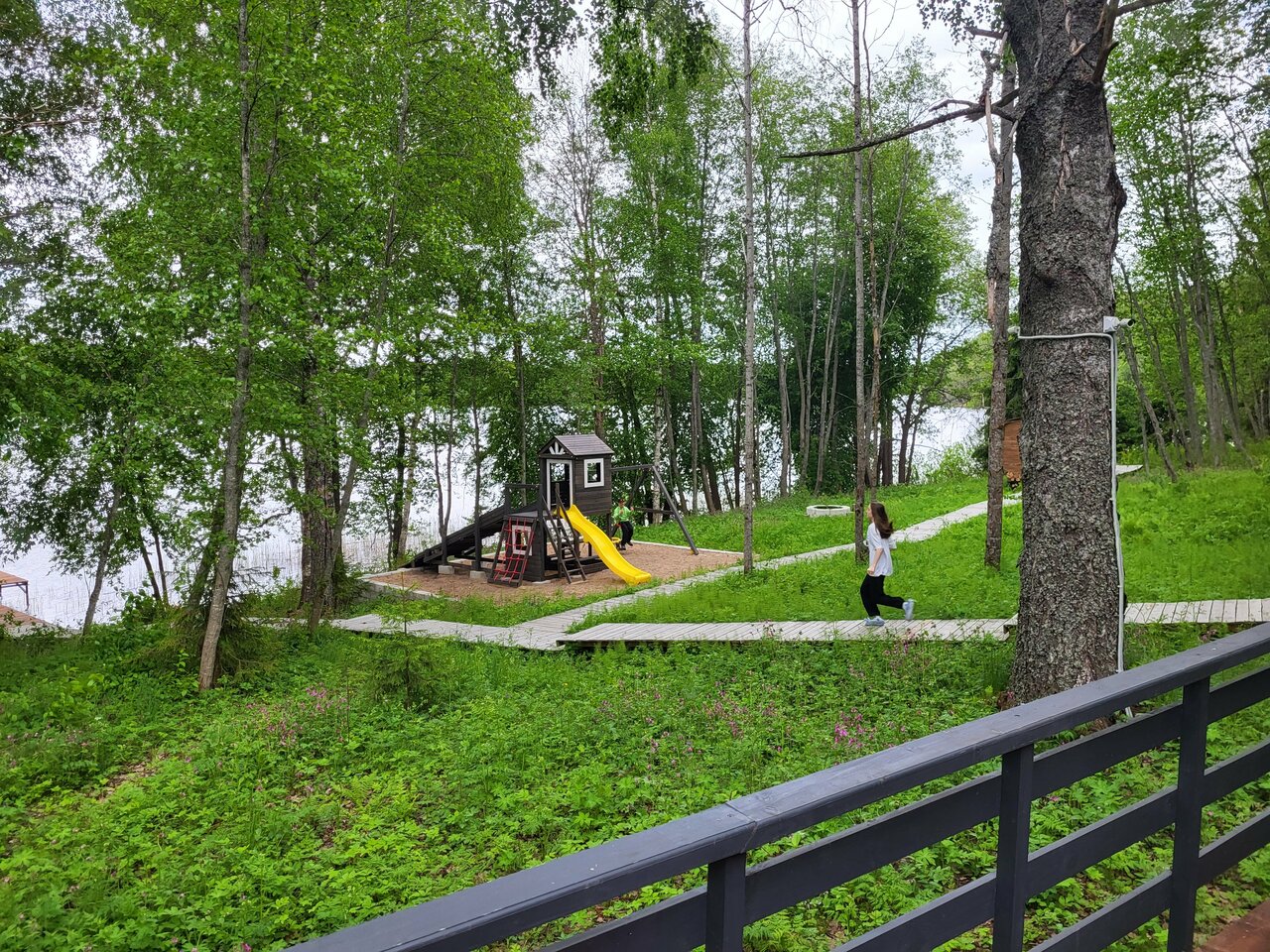 На территории: бесплатная парковка, баня, терраса, камин, детская площадка, зона для пикника и рыбалка. Дополнительно — прокат лодок и водного снаряжения, платный трансфер.