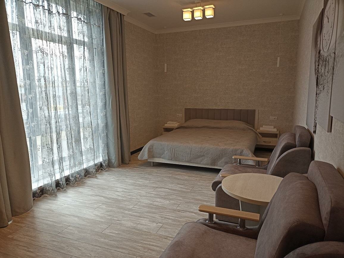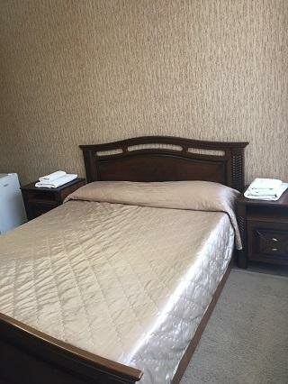 Весьма себе приличный отель, в номере чисто, постельное белье свежее, душ — туалет чистые. Не бронировали. Ехали в Крым, остановились на ночлег. Мы с женой и двое взрослых детей. Однокомнатный номер, две раздельные кровати и одна двухспальная. 2500 в сутки. Есть ресторан с умеренными ценами, по качеству не скажу, не ели. Отоспались, поехали дальше. Рекомендую.