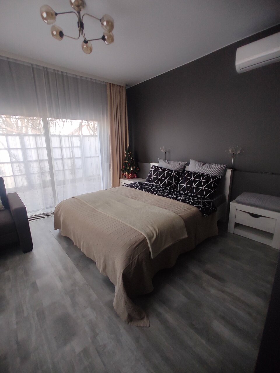 Встречали Новый 2025 год!!! Все понравилось: теплый уютный дом с современными техникой, мебелью, ремонтом, порадовал новогодний интерьер и сервировка. Удобный мангал и принадлежности, есть дрова и горелка( можно не покупать угли) и посидеть у огня, решетки и шампура разных размеров ,что очень приятно Рядом любые магазины, но территория большая и тупиковое месторасположение, поэтому тихо В подарок угостили кальяном, домашним вином и компотом . Спасибо за заботу, приедем ещё