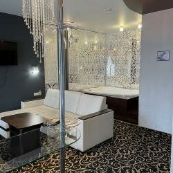 Были двое суток в номере стандарт, и номере люкс с джакузи. Придорожный отель. Из всех по России придорожных, это самого высокого уровня. Есть все, что нужно — телевизор, холодильник, чайник, набор для чая, кружки, стаканчики, даже вода в комплекте. Зона кухни отделена, очень удобно. Есть зона для еды. Люкс в сиреневом стиле, очень большой, тоже зонирован. Из минусов, джакузи в нерабочем состоянии и не сделали, так как проблема была глобальная. Ещё во всех номерах окна в пол, но смысла в них нет, 1 этаж, трасса или окна во двор жилых домов. приходилось закрывать. Совет: если б тонировку, было б классно. А так уборка, ванные принадлежности, тапки даже. в общем все приятно для такого маленького городка.