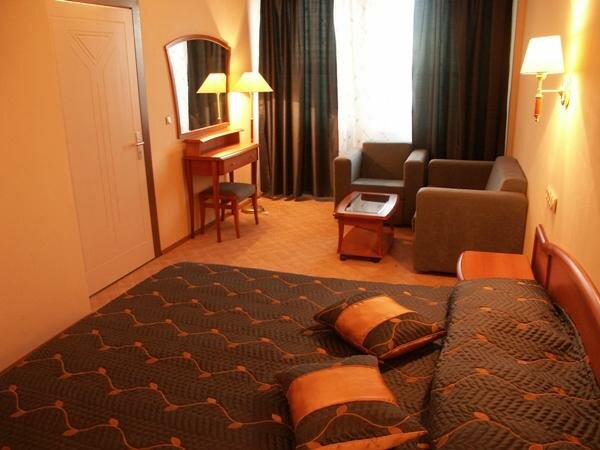 Безумно холодно в номерах, у меня не работала одна батарея. Горячей воды почти не было, лилась еле тёплой и то не каждый день. Интерьеры в номерах местами потрепаные. Итого если есть возможность то берите другую гостиницу, благо она тут есть.